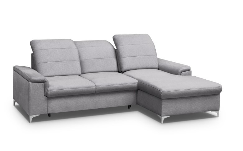 Moderní rohová sedací souprava BENET je rozkládací s úložným prostorem. Rozložení sedačky je jednoduché díky mechanismu Delfín. Rozměry spací plochy po rozložení jsou 198 x 140 cm. V rohové části se nachází úložný prostor, který je dostatečně veliký pro uschování lůžkovin a denních dek. Pohodlí při sezení zajistí pěna t2830 a vlnitá pružina. Dozajista také oceníte možnost úpravy hloubky sedu dle vašich potřeb - 3x volitelná hloubka sedu 56-72 cm. Dále pak 3x polohovací podhlavník - automat. Nožky sedací soupravy BENET jsou kovové. Barevné provedení sedačky je ve světle šedé barvě. Dekorativní prošití na sedadle a opěradle.