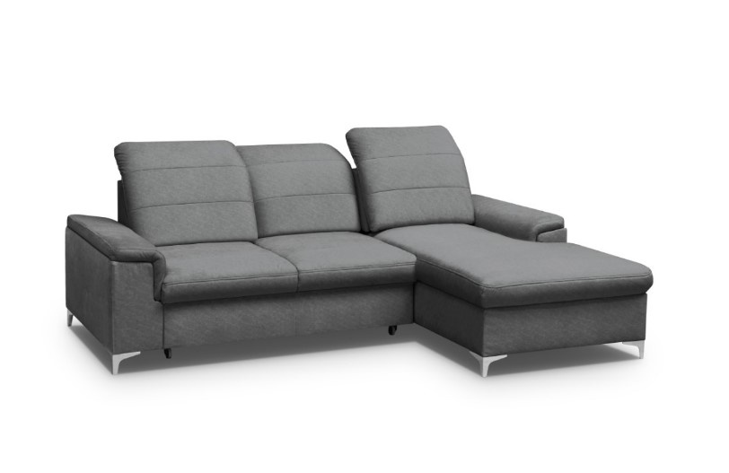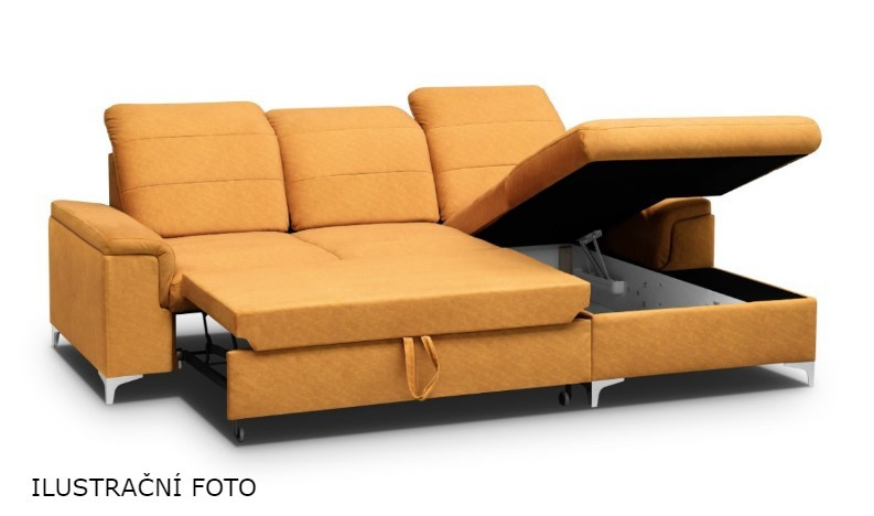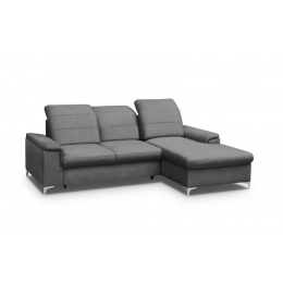 Moderní rohová sedací souprava BENET je rozkládací s úložným prostorem. Rozložení sedačky je jednoduché díky mechanismu Delfín. Rozměry spací plochy po rozložení jsou 198 x 140 cm. V rohové části se nachází úložný prostor, který je dostatečně veliký pro uschování lůžkovin a denních dek. Pohodlí při sezení zajistí pěna t2830 a vlnitá pružina. Dozajista také oceníte možnost úpravy hloubky sedu dle vašich potřeb - 3x volitelná hloubka sedu 56-72 cm. Dále pak 3x polohovací podhlavník - automat. Nožky sedací soupravy BENET jsou kovové. Barevné provedení sedačky je ve tmavě šedé barvě. Dekorativní prošití na sedadle a opěradle.
