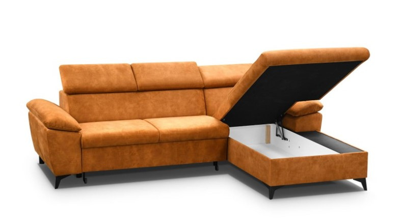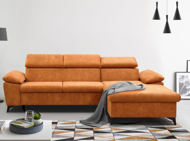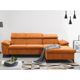 Rohová sedací souprava CINDY vás zaujme svým moderním a praktickým zpracováním. Potažena je skořicovou látkou Sally 14 (Easy Clean - snadno se čistí, hebká, otěruvzdorná). Pohodlné sezení zajistí výplň sedáku vlnitou pružinou, PUR pěnou a 3x polohovací podhlavník. V případě, že máte rádi, když vás hosté navštěvují a potřebujete místo, pro jejich příležitostné přespání, sedací souprava CINDY vám s tímto pomůže. Má k dispozici funkci rozkladu a také úložný prostor do kterého můžete uschovat lůžkoviny. Velikost spací plochy je po rozložení 126 x 210 cm.