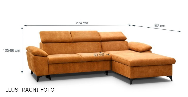 Rohová sedací souprava CINDY vás zaujme svým moderním a praktickým zpracováním. Potažena je tmavě šedou látkou Sally 09 (Easy Clean - snadno se čistí, hebká, otěruvzdorná). Pohodlné sezení zajistí výplň sedáku vlnitou pružinou, PUR pěnou a 3x polohovací podhlavník. V případě, že máte rádi, když vás hosté navštěvují a potřebujete místo, pro jejich příležitostné přespání, sedací souprava CINDY vám s tímto pomůže. Má k dispozici funkci rozkladu a také úložný prostor do kterého můžete uschovat lůžkoviny. Velikost spací plochy je po rozložení 126 x 210 cm.