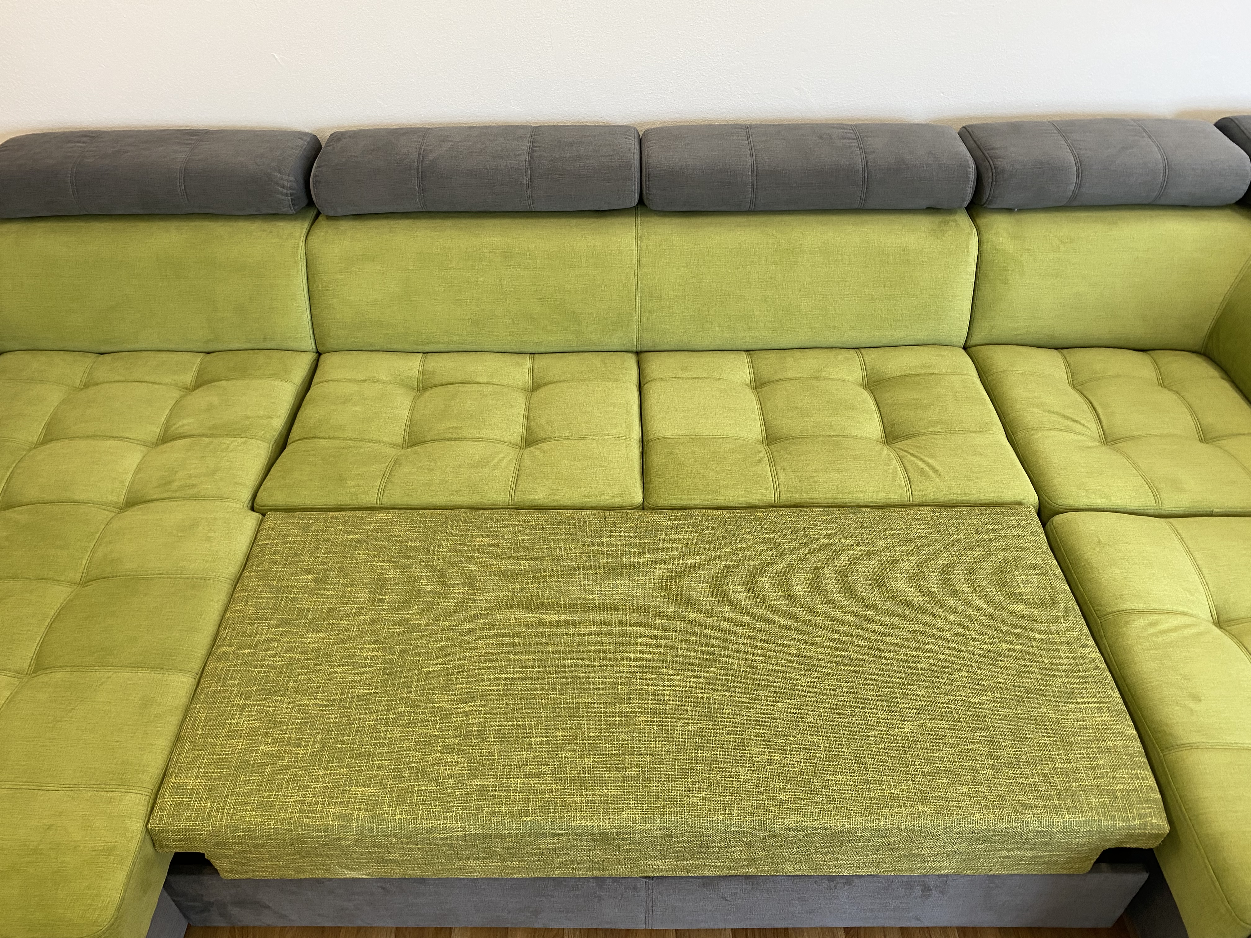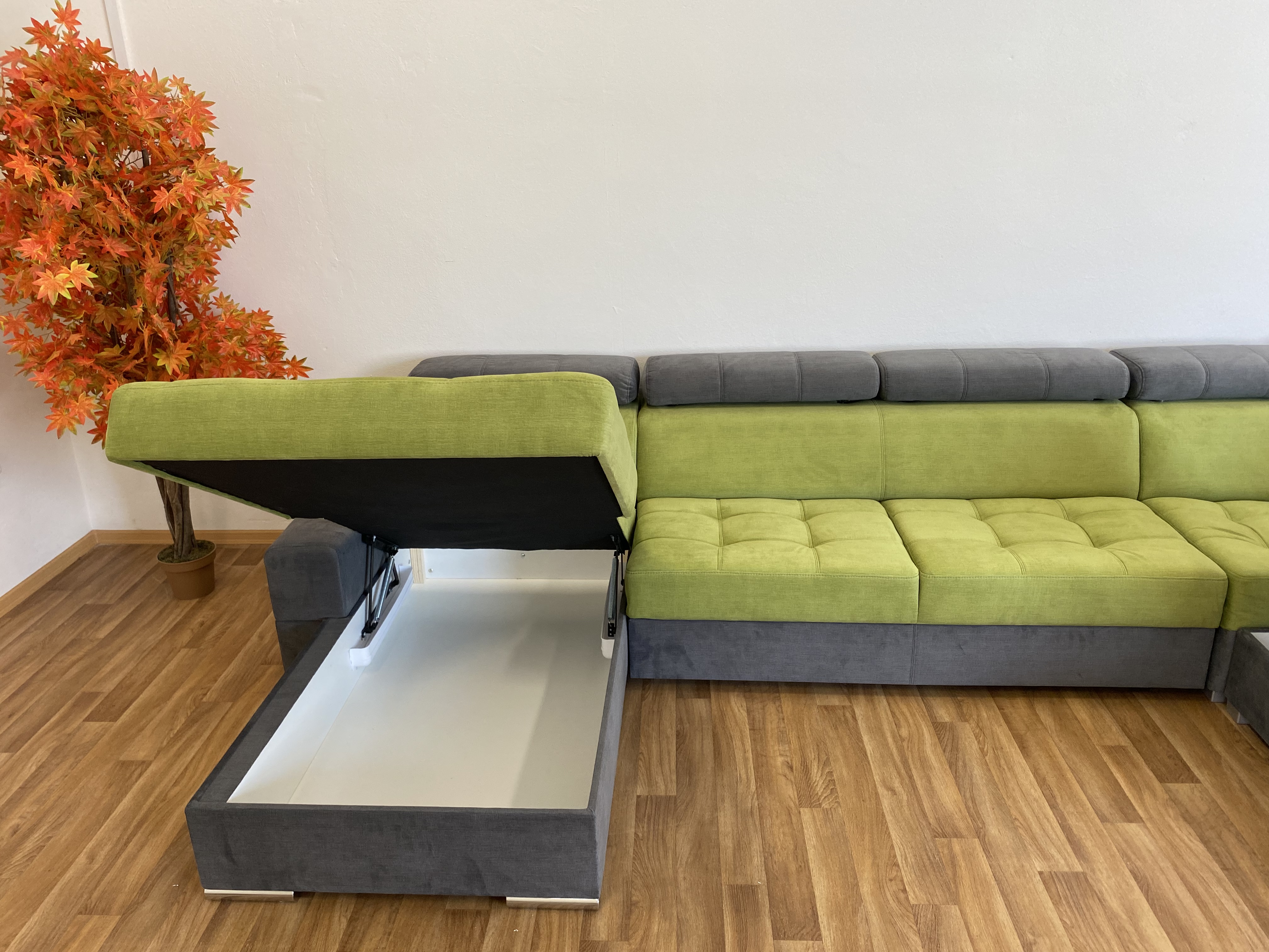 Moderní, velká, rohová sedací souprava do U, MODULO V. Tato sedací souprava vynikne ve větším otevřeném prostoru, po rozložení je vhodná k příležitostnému přespání. U rohové sedací soupravy MODULO V si můžete variabilně volit rozměry jednotlivých dílů sedačky ( viz. obrázek rozměrů ) a tak přizpůsobit její velikost prostoru Vašeho obýváku. Sedací souprava je určena do prostoru - má očalouněná záda. V sedácích jsou pružinové vlnovce a kvalitní studená PUR pěna. Rozkládací sedací souprava disponuje objemnými úložnými prostory. Samozřejmostí je volba orientace stran. Výběr potahových látek. Chromované nožičky.