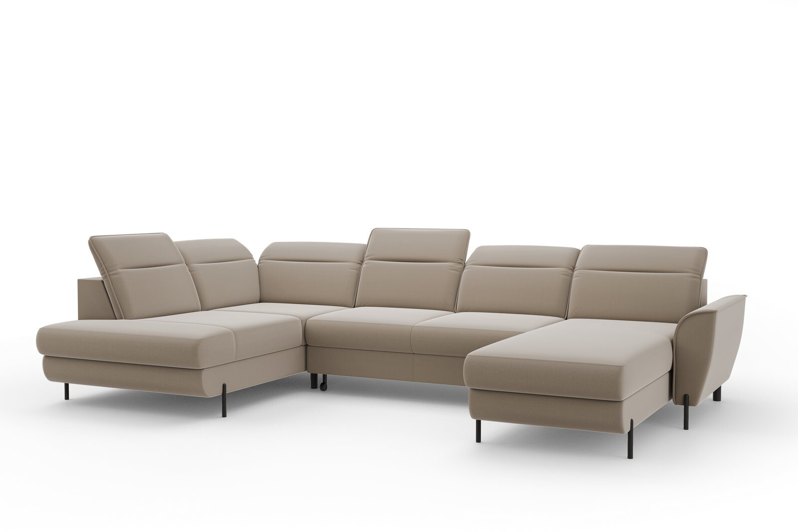 Moderní a elegantní sedací souprava do U PAOLA je rozkládací, s úložným prostorem postavená na elegantních vysokých kovových nožičkách v černé barvě. Sedačku PAOLA jde rozložit na kvalitní lůžko pro příležitostné přespání. Úložný prostor je dostatečně objemný pro uložení dek a lůžkovin. Sedací souprava je vyplněná pružinovými vlnovci a vysoce elastickou HR pěnou. Záda sedačky jsou očalouněná stejnou potahovou látkou jako celá sedačka a můžete ji umístit do prostoru. Rohovka má polohovatelné opěrky hlavy. Rohová sedací souprava PAOLA se vyrábí v pravém nebo levém provedení rohu.