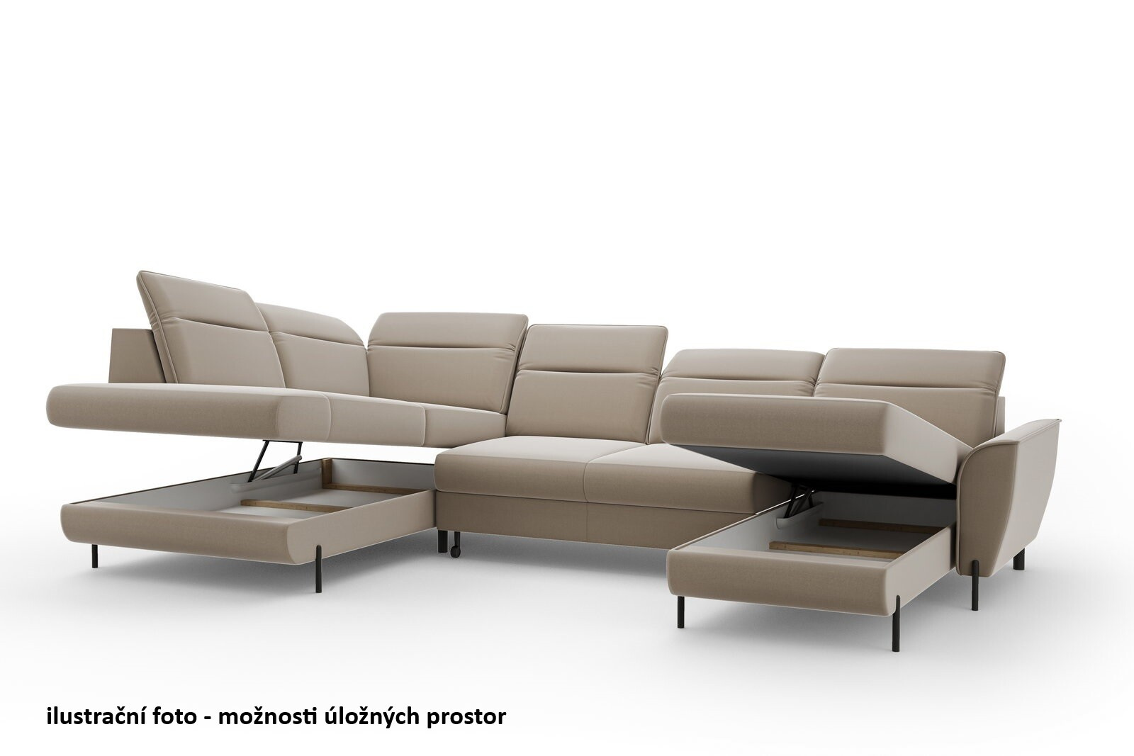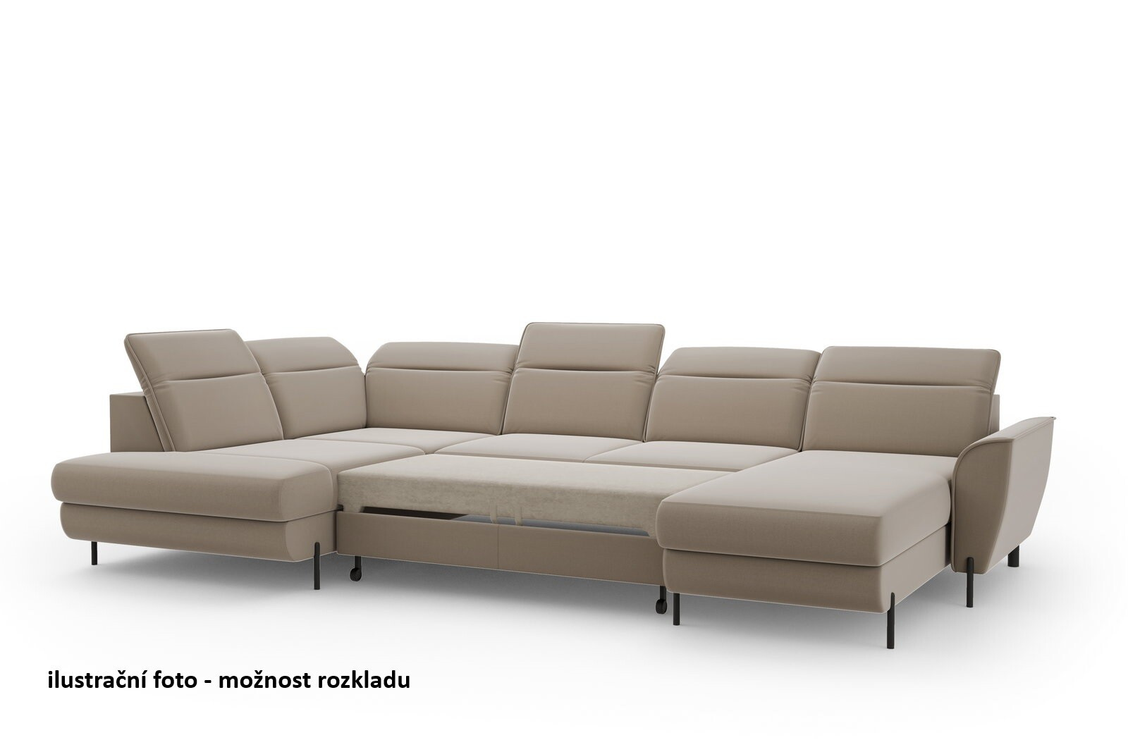 Moderní a elegantní sedací souprava do U PAOLA je rozkládací, s úložným prostorem postavená na elegantních vysokých kovových nožičkách v černé barvě. Sedačku PAOLA jde rozložit na kvalitní lůžko pro příležitostné přespání. Úložný prostor je dostatečně objemný pro uložení dek a lůžkovin. Sedací souprava je vyplněná pružinovými vlnovci a vysoce elastickou HR pěnou. Záda sedačky jsou očalouněná stejnou potahovou látkou jako celá sedačka a můžete ji umístit do prostoru. Rohovka má polohovatelné opěrky hlavy. Rohová sedací souprava PAOLA se vyrábí v pravém nebo levém provedení rohu. Sedací soupravu PAOLA si můžete doplnit praktickým taburetem s úložným prostorem.
