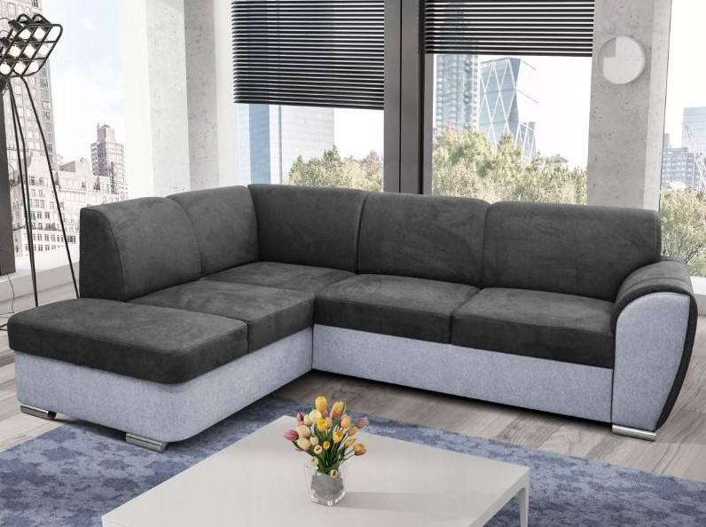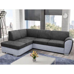 Pohodlná a moderní rohová sedací souprava DORI. Sedačka je rozkládací s úložným prostorem. Výplň opěrných polštářů je PUR pěna, sedák je vyplněn vlnitou pružinou a PUR pěnou. Po rozložení vznikne spací plocha o rozměrech 130 x 265, je vhodná na příležitostné spaní. V barevném provedení Primo 96 tmavě šedá a Primo 88 světle šedá, viz foto. Sedačka je v pravém nebo levém rohovém provedení.