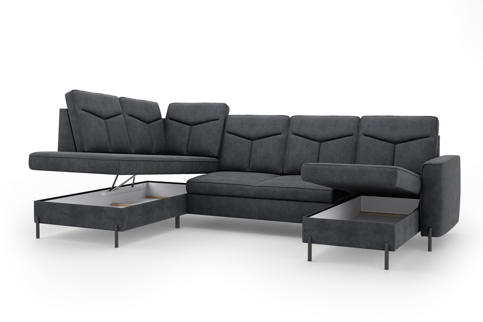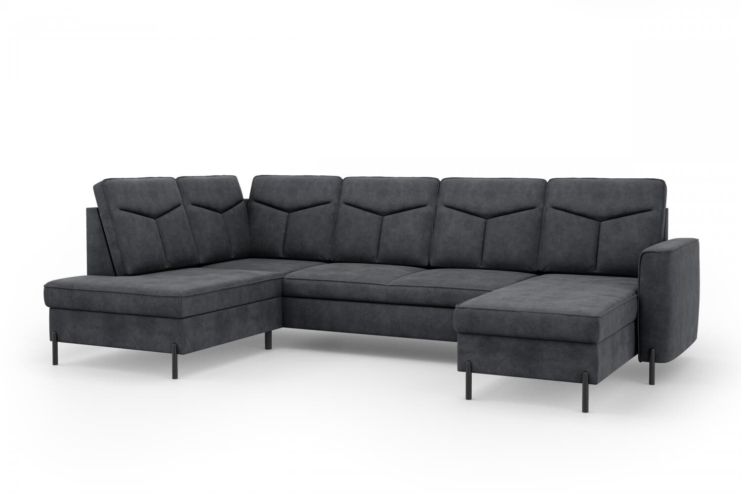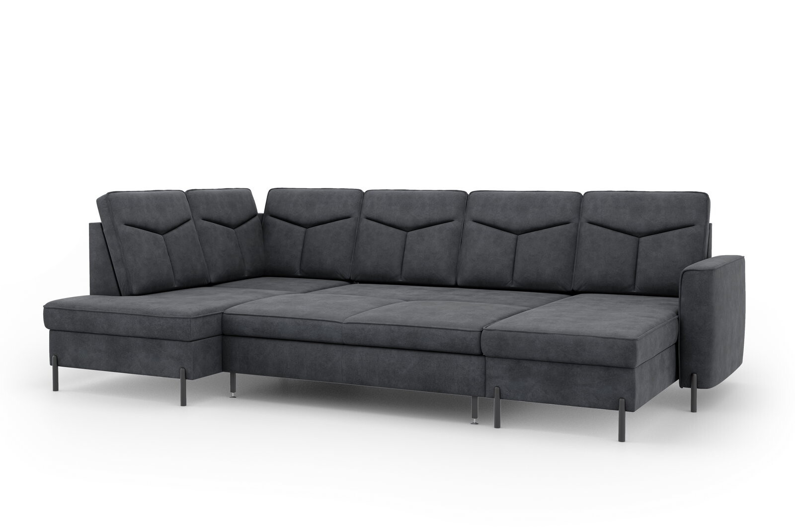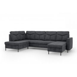 Moderní rohová sedací souprava do U GOMERA - funkční a praktická. Sedací soupravu lze rozložit kvalitní lůžko pro příležitostné přespání. Úložný prostor lze využít pro uložení dek a lůžkovin. Sedací soupravy je čalouněná kvalitní vysokoelastická HR pěnou umístěnou na vlnité pružině, která je zárukou trvanlivosti a vysokého komfortu sezení. Sedací souprava je postavena na černých ocelových nohách o výšce 10 cm. Rohová sedací souprava se vyrábí v pravém i levém provedení. Záda jsou čalouněná, je tedy vhodná i pro umístění v prostoru. K sedačce lze dokoupit taburet.