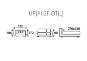 Rozměry sedací sestavy GOMERA: OT - 2F - UP