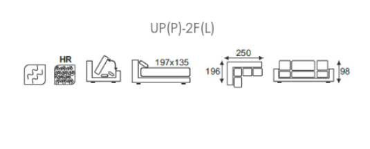 Rozměry sedací sestavy GOMERA: 2F - UP