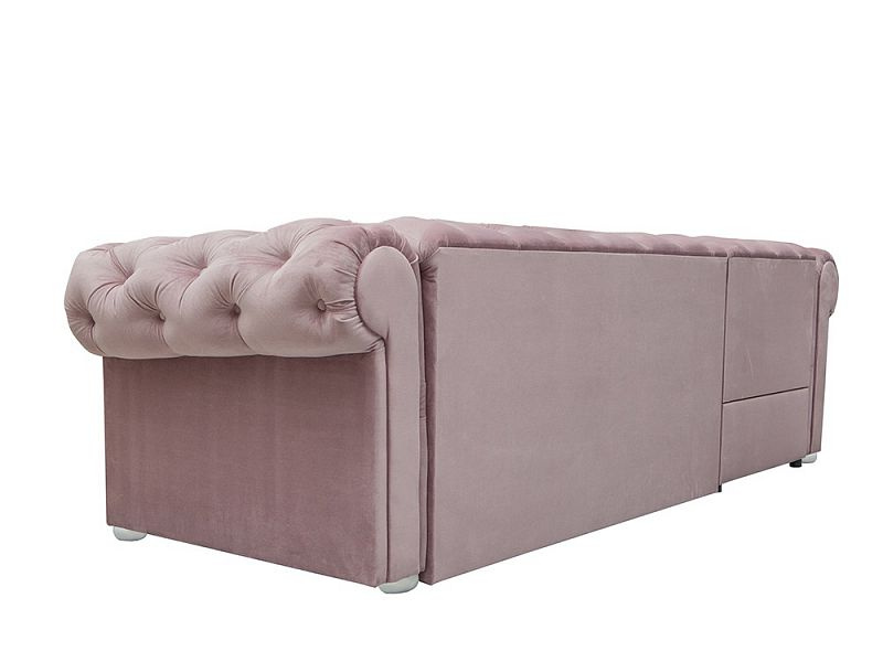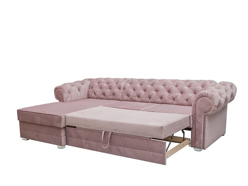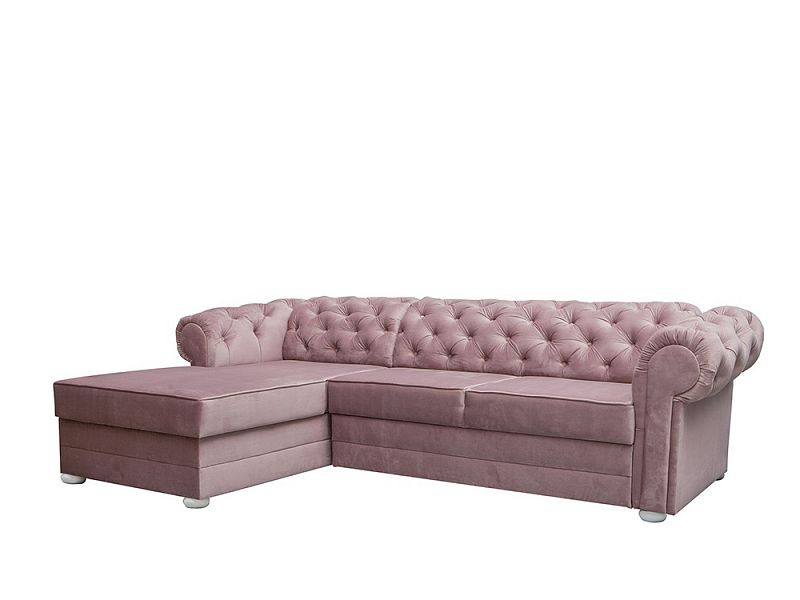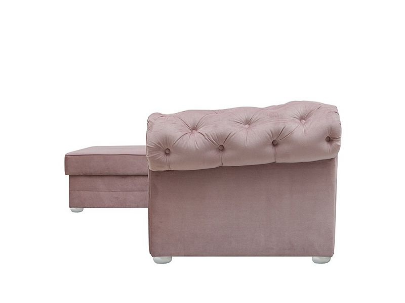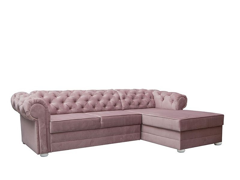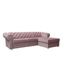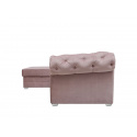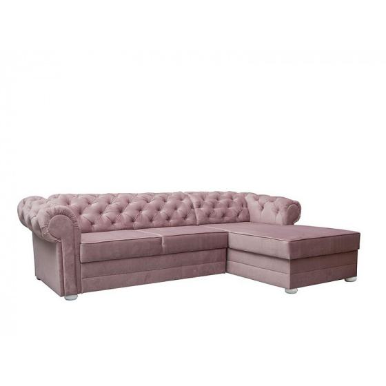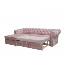 Klasická rohová sedací souprava v Chesterfield stylu. Rohová sedací souprava IRVING dodá Vašemu obývacímu pokoji anglickou eleganci a nadčasovost. Rohová sedací souprava je rozkládací s lůžkem pro příležitostné přespání o velkosti 125 x 210 cm. Pod otomanem máte k dispozici objemný úložný prostor na deky a lůžkoviny. Nohy jsou dřevěné v bílé barvě. Rohovka je očalouněná modní starorůžovou látkou Riviera 62. Můžete si vybrat pravou nebo levou orientaci rohu, podle dispozic Vašeho obývacího pokoje.