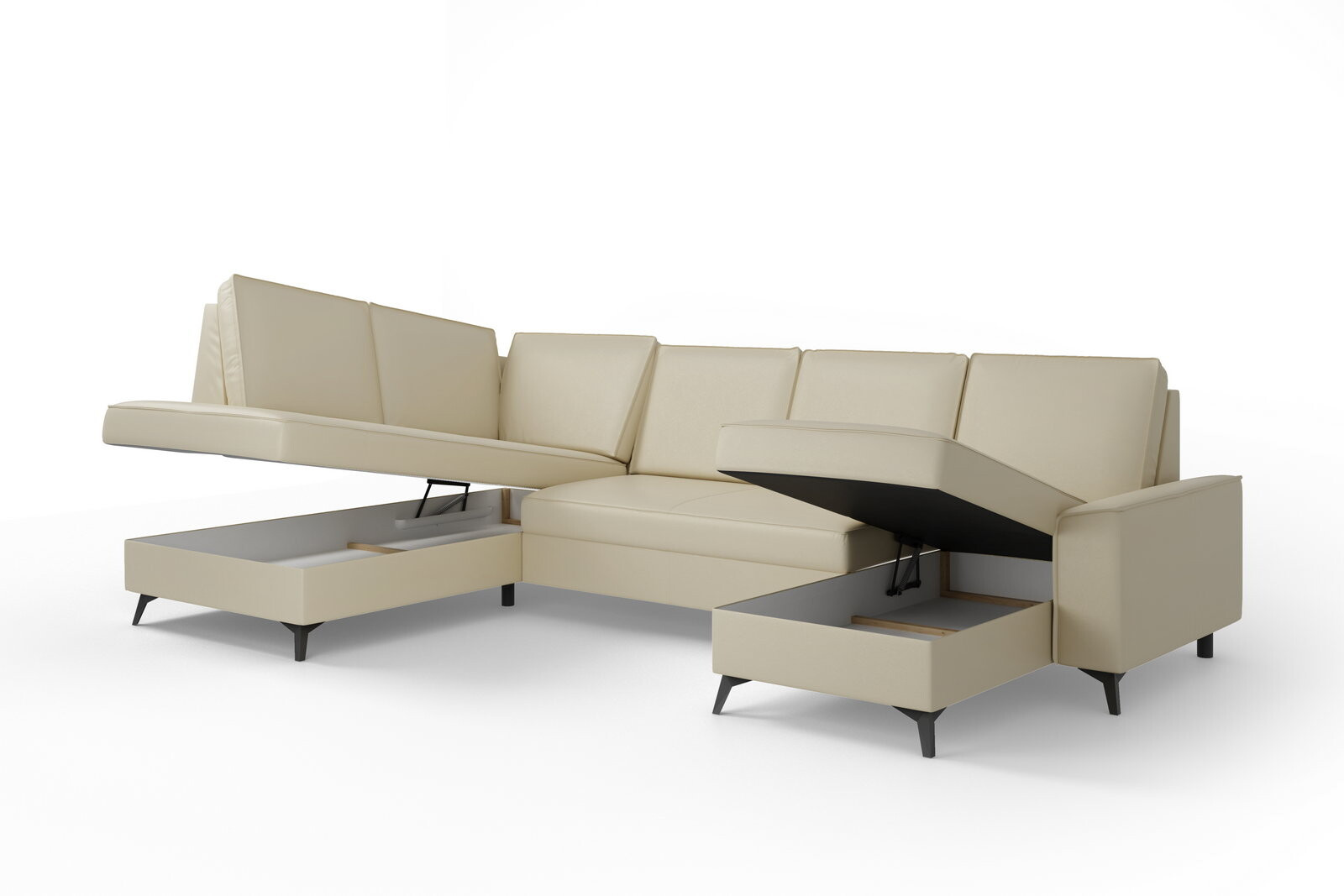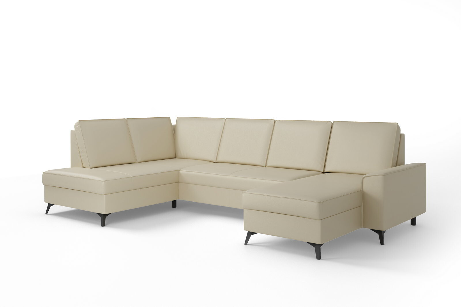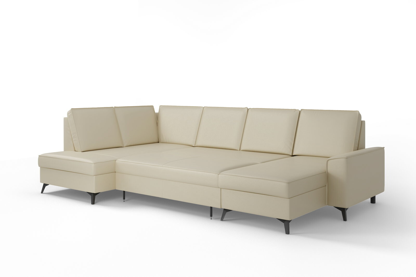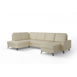 Elegantní rohová sedací souprava do U ITAKA - funkční a praktická. Sedací soupravu lze rozložit na velmi kvalitní lůžko. Úložný prostor lze využít pro uložení dek a lůžkovin. Sedací soupravy je čalouněná kvalitní vysokoelastická HR pěnou umístěnou na vlnité pružině, která je zárukou trvanlivosti a vysokého komfortu sezení. Sedací souprava je postavena na černých ocelových nohách o výšce 10 cm. Rohová sedací souprava se vyrábí v pravém i levém provedení. Záda jsou čalouněná, je tedy vhodná i pro umístění v prostoru. K sedačce lze dokoupit praktický zahlavník, který můžete libovolně zasunout do každého opěradla a taburet.