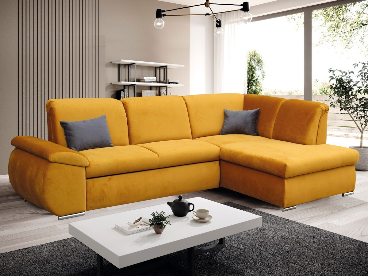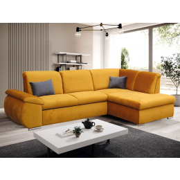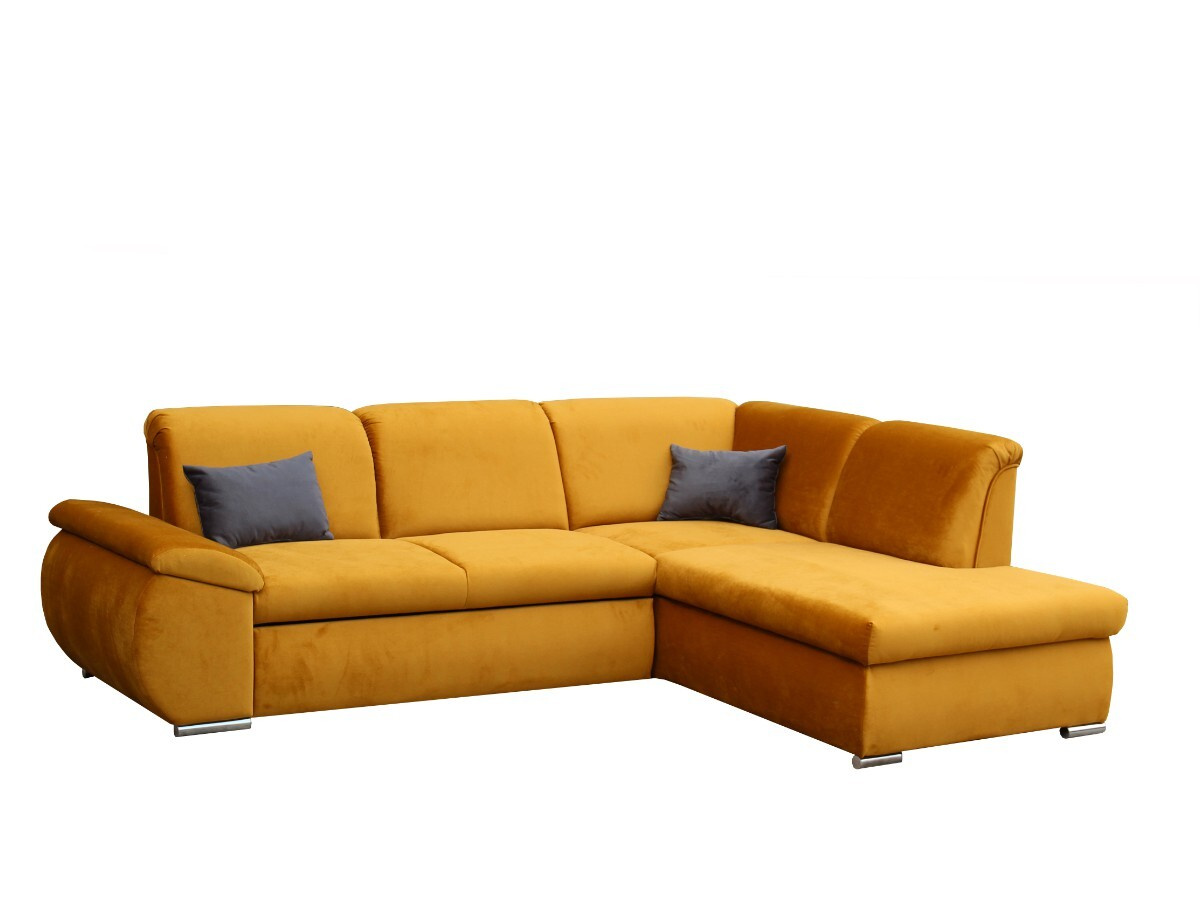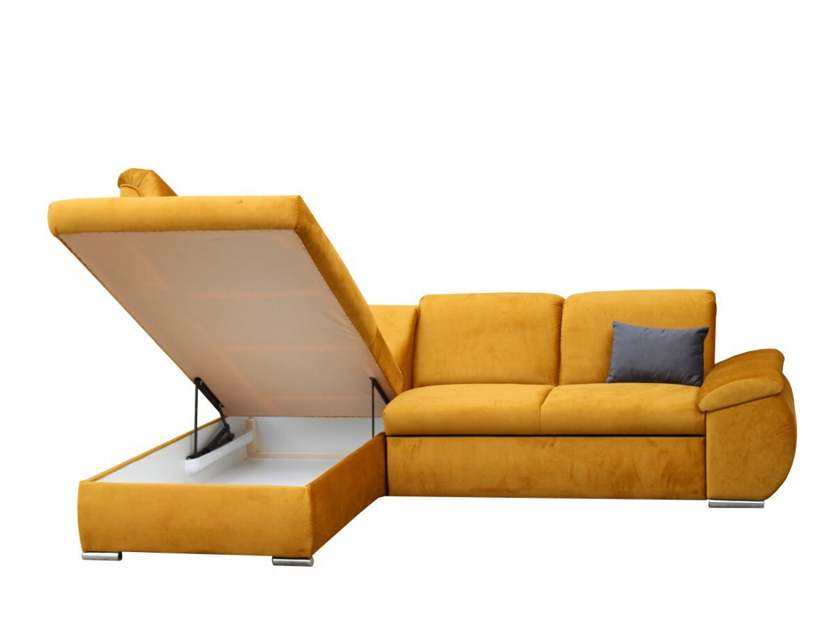 Moderní sedací souprava LEJLA, rozkládací pro příležitostné přespání, úložný prostor. Po rozložení plocha pro spaní 202 x 128 cm. Pohodlí při sezení zajišťuje výplň sedáku, tvořená kombinací vlnité pružiny s polyuretanovou pěnou, vysoce elastickou hmotou. Matrace rozkladu je pružinová. Nožky jsou kovové, pochromované. Sedačka je čalouněná i zezadu a dá se umístit do prostoru. Kvalitní zpracování a odolný materiál zajistí dlouhodobé využití rohové sedací soupravy. Součástí sedačky jsou dva ozdobné polštářky. Možnost objednání levého nebo pravého provedení.