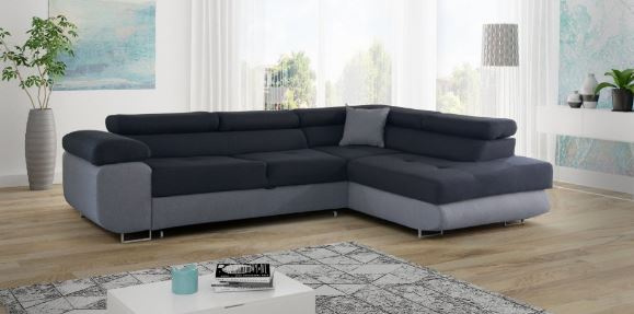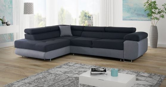 Moderní rohová sedací souprava LIDO s výškově nastavitelnými záhlavníky. Sedačka je rozkládací s úložným prostorem. Po rozložení vznikne lůžko pro příležitostné přespání o rozměrech 125 x 208 cm. Můžete si vybrat pravou nebo levou orientaci rohu, podle dispozic Vašeho obývacího pokoje. Tuto sedací soupravu můžete mít v kvalitní potahové látce Seal 89. Rohovka je očalouněná včetně zad sedačky, můžete ji tedy umístit do prostoru. Pohodlí při sezení Vám zaručí polohovatelné opěrky hlavy. Výška sedačky je podle sklopení opěrek hlavy 75 až 90 cm. Sedák je vyplněný studenou HR pěnou a vlnitou pružinou. Velký výběr potahových látek na dotaz.