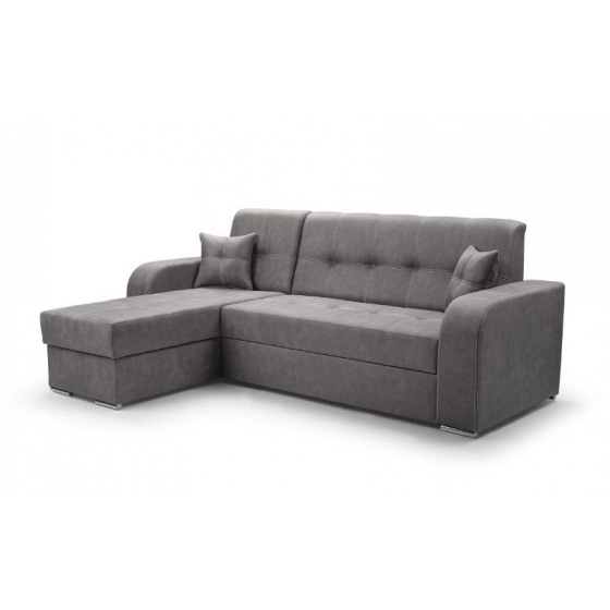 Rohovou sedací soupravu MALIBU je vhodné během dne využít jako místo k sezení u televize, večer pro příležitostné přespání. Sedací souprava je potažená látkou ve tmavě šedé barvě Queens 23. Čalouněna jsou také záda - vhodné k umístění do prostoru. Součástí sedačky je úložný prostor a možnost rozkladu. Spací plocha je o rozměrech 135 x 190 cm. Úložný prostor je vhodný pro uschování denních dek nebo sezónních věcí. Včetně dvou dekoračních polštářků ve stejné látce.