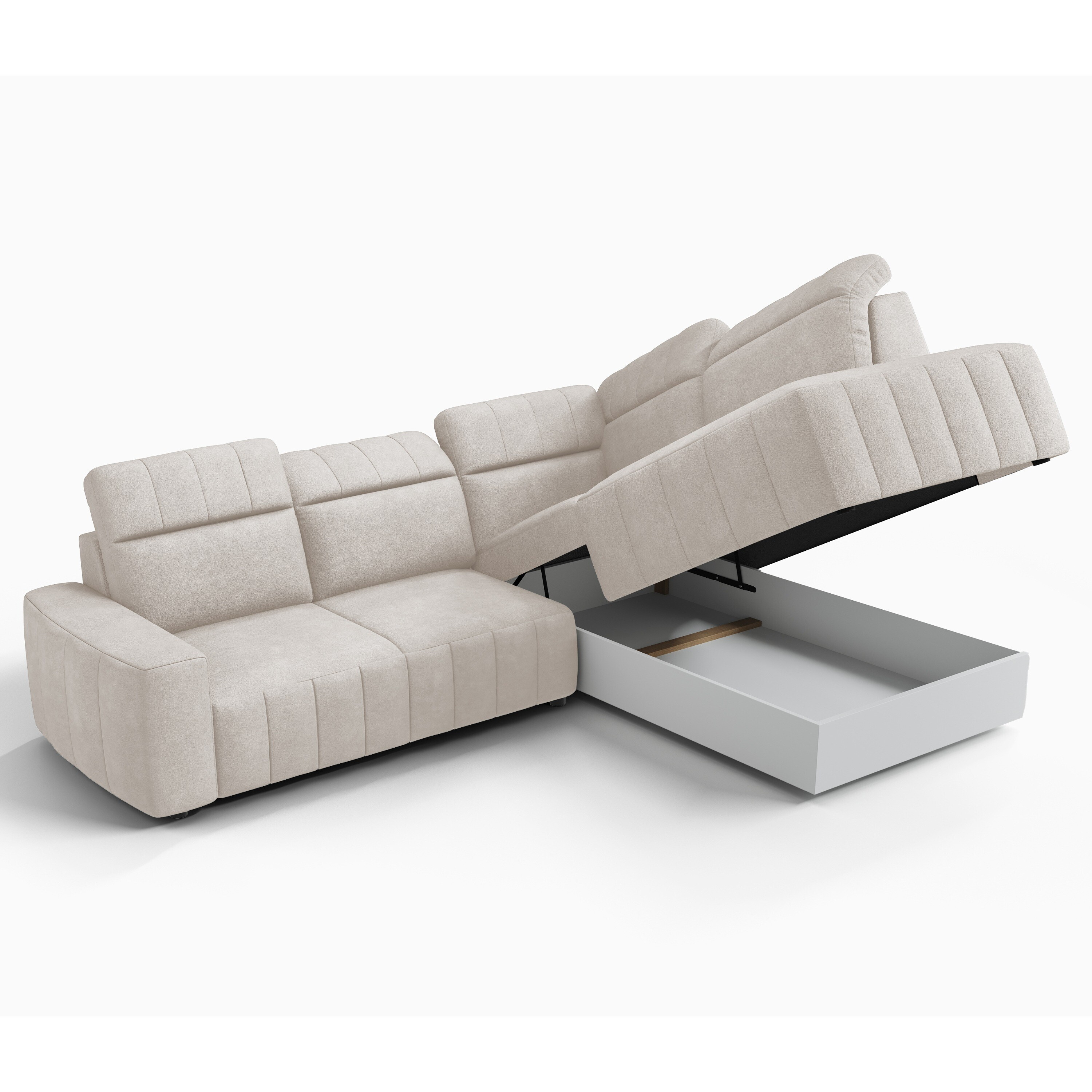Moderní rohová sedací souprava MOREA s rozkladem pro pohodlné příležitostné přespání Vašich návštěv, úložným prostorem a polohovatelnými záhlavníky. Komfortní a pohodlné sezení zajišťují pružinové vlnovce a kvalitní studené pěny, to vše očalouněno kvalitní potahovou látkou. Sedací souprava disponuje praktickými záhlavníky, které lze polohovat pro dosažení většího pohodlí. Sedačku můžete využít také jako dodatečné lůžko pro hosty. Do úložného prostoru můžete navíc uschovat deky a lůžkoviny, které tak budete mít v případě potřeby po ruce. Rohovka MOREA je vyráběná ve třech velikostech a pravém nebo levém provedení rohu. K sedací soupravě MOREA můžete dokoupit praktický taburet.