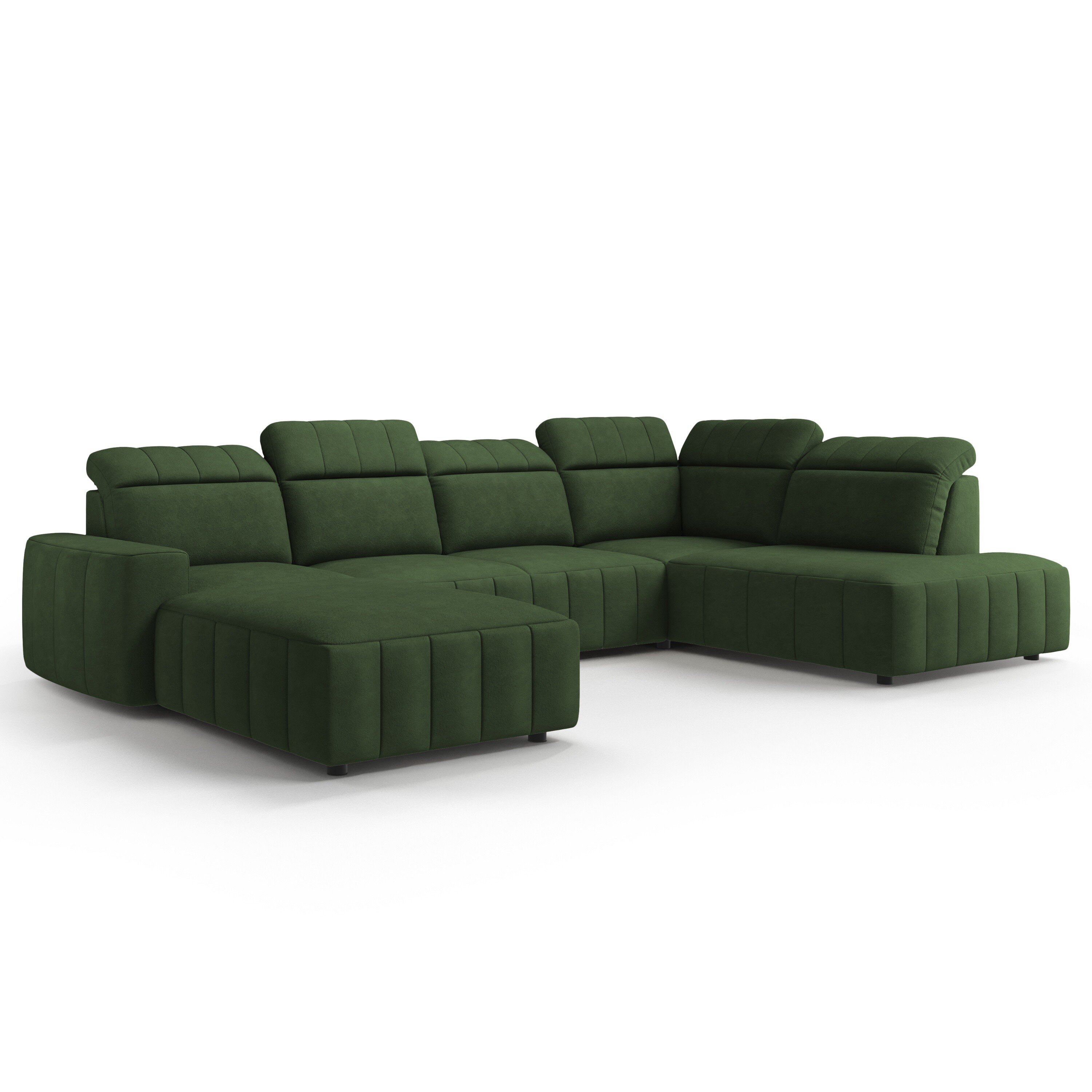 Moderní rohová sedací souprava do U MOREA s rozkladem pro pohodlné příležitostné přespání Vašich návštěv, úložným prostorem a polohovatelnými záhlavníky. Komfortní a pohodlné sezení zajišťují pružinové vlnovce a kvalitní studené pěny, to vše očalouněno kvalitní potahovou látkou. Sedací souprava disponuje praktickými záhlavníky, které lze polohovat pro dosažení většího pohodlí. Sedačku můžete využít také jako dodatečné lůžko pro hosty. Do úložného prostoru můžete navíc uschovat deky a lůžkoviny, které tak budete mít v případě potřeby po ruce. Rohovka MOREA je vyráběná ve třech velikostech a pravém nebo levém provedení rohu a provedení do U. K sedací soupravě MOREA můžete dokoupit praktický taburet.