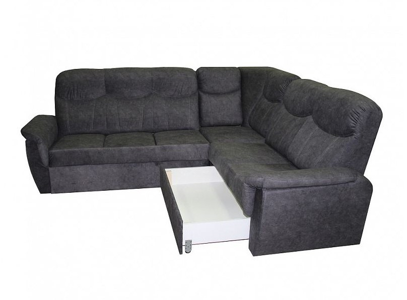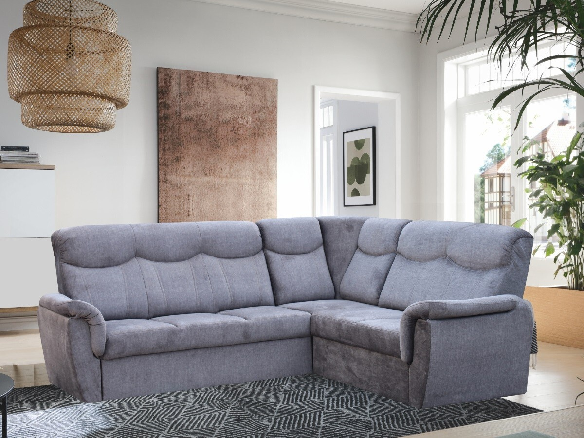Sedací souprava NAIROBI je čalouněna tmavě šedou látkou Vogue 16. Rohové provedení je levé nebo pravé dle vlastního výběru. Sedačka je vhodná k příležitostnému přespání. Umožňuje rozklad na ložnou plochu 117 x 200 cm. Součástí je i úložný prostor vhodný pro uschování veškerých lůžkovin. Výplní sedáku jsou bonellové pružiny, vlnitá pružina a polyuretanová pěna. Komfortní vysoký sedák i opěrák zaručí pohodlné sezení. Rohové opěrky jsou polohovací.