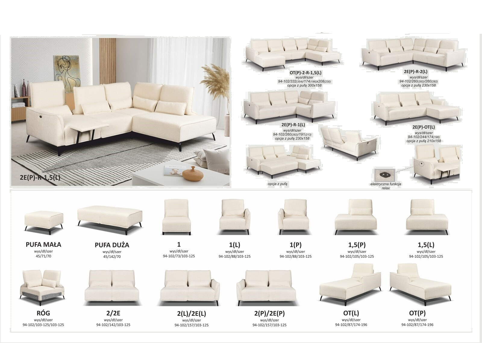Rohová sedací souprava NARNIA s elektricky výsuvnou podnožkou - 2E + OT ( pravá nebo levá orientace rohu )