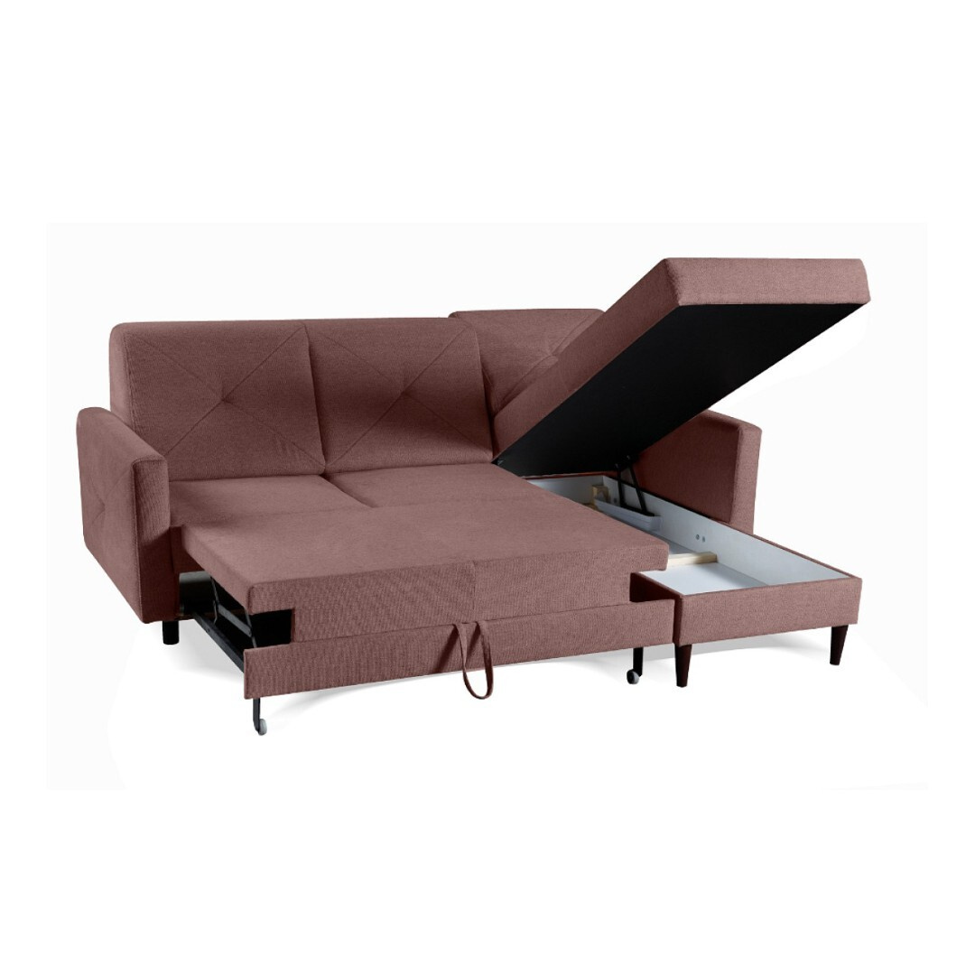 Barevné provedení v bordó barvě látky Storm 59. Látka s úpravou Easy Clean - pro snadné čištění vodou. Nožky dřevěné - buk.