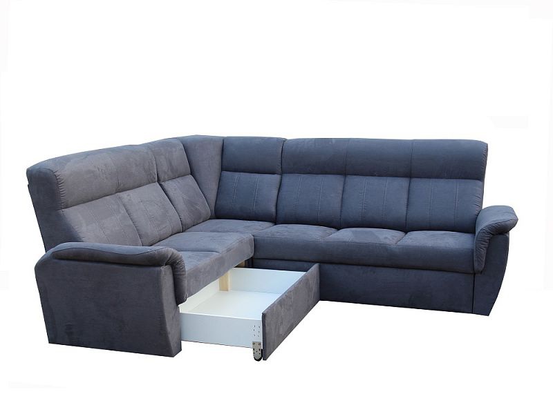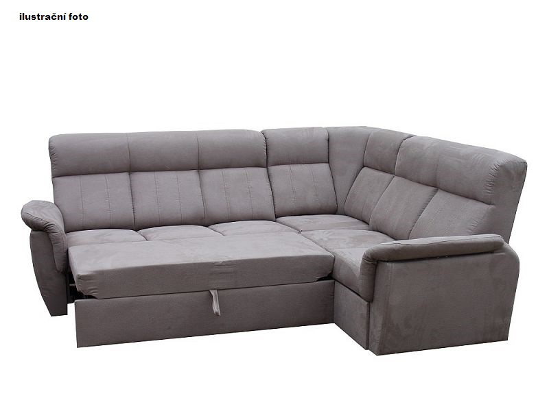 Rohová sedací souprava PLATON MINI. Sedací souprava je rozkládací s úložným prostorem. V rohovém dílu jsou dvě polohovatelné opěrky zad. Výplň sedáků tvoří pružinové jádro a kvalitní PUR pěna, která zajistí pohodlné sezení. Sedací souprava je v levém nebo pravém provedení. Rohovka je dodávána v šedé látce.