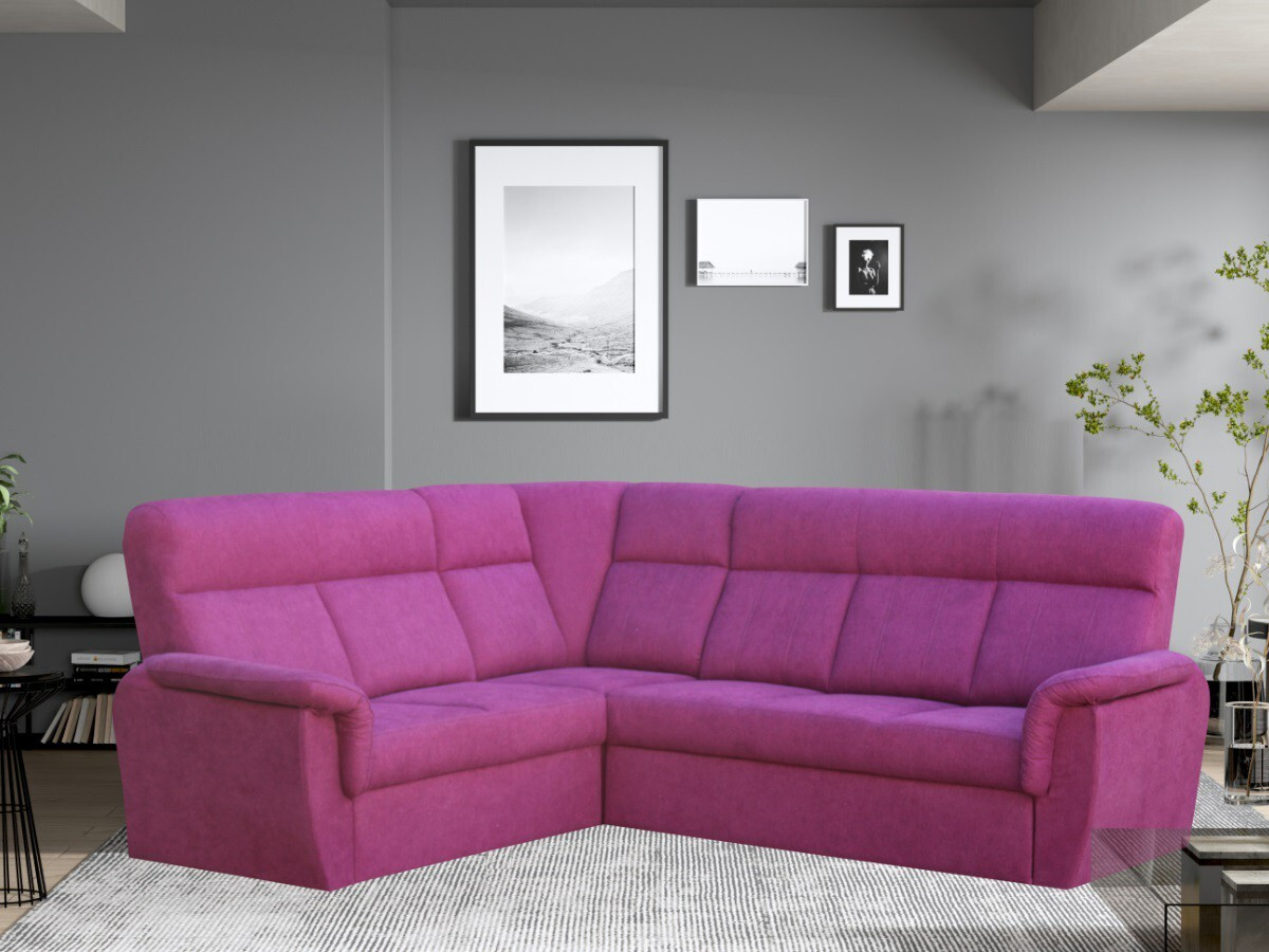 Rohová sedací souprava PLATON MINI. Sedací souprava je rozkládací s úložným prostorem. V rohovém dílu jsou dvě polohovatelné opěrky zad. Výplň sedáků tvoří pružinové jádro a kvalitní PUR pěna, která zajistí pohodlné sezení. Sedací souprava je v levém nebo pravém provedení. Rohovka je dodávána ve vínové látce Primo 68.