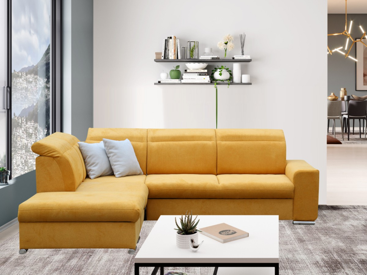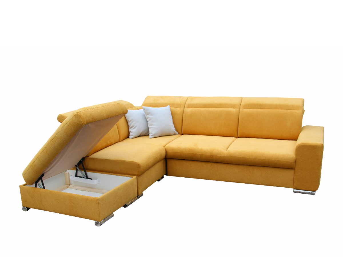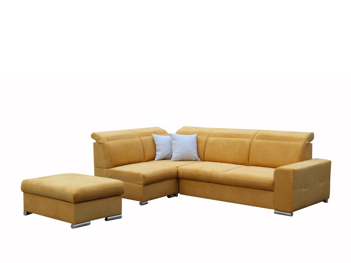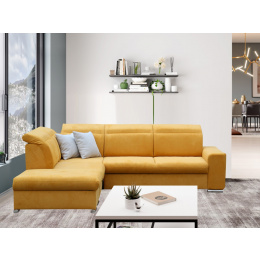 Pohodlná a moderní rohová sedací souprava RAMON. Sedačka je rozkládací s úložným prostorem. Výplň opěrných polštářů je PUR pěna, sedák je vyplněn vlnitou pružinou a PUR pěnou. Po rozložení vznikne spací plocha o rozměrech 130 x 215, je vhodná na příležitostné spaní. V barevném provedení Brooklyn mostaza - hořčicová, viz foto. Sedačka je v pravém nebo levém rohovém provedení. Opěrky hlavy jsou stavitelné. Taburet můžete použít i samostatně v prostoru.