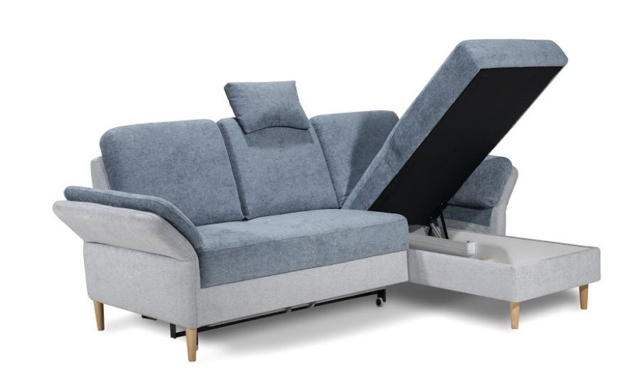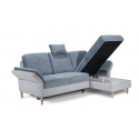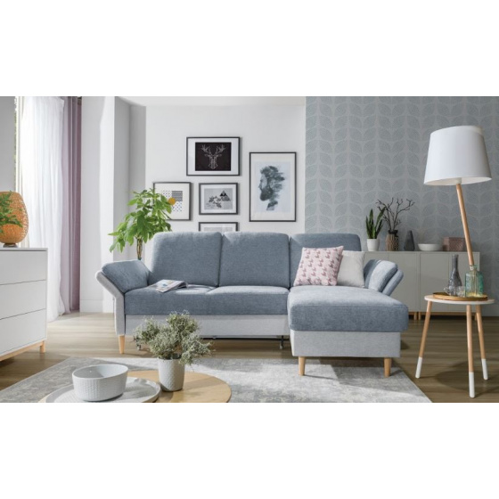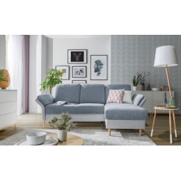 Rohová sedací souprava SORI s polohovatelnými područkami je rozkládací s úložným prostorem a dřevěnýma nožičkama. Sedací soupravu máte možnost sestavit v pravém nebo levém provedení. Sedací souprava je rozkládací s lůžkem o rozměrech 120 x 190 cm. Sedací čast je vyplněná pružinovými vlnovci a PUR pěnou odolnou proti prosezení. Tato elegantní sedací souprava se bude díky svým rozměrům skvěle hodit i do malého obývacího pokoje.