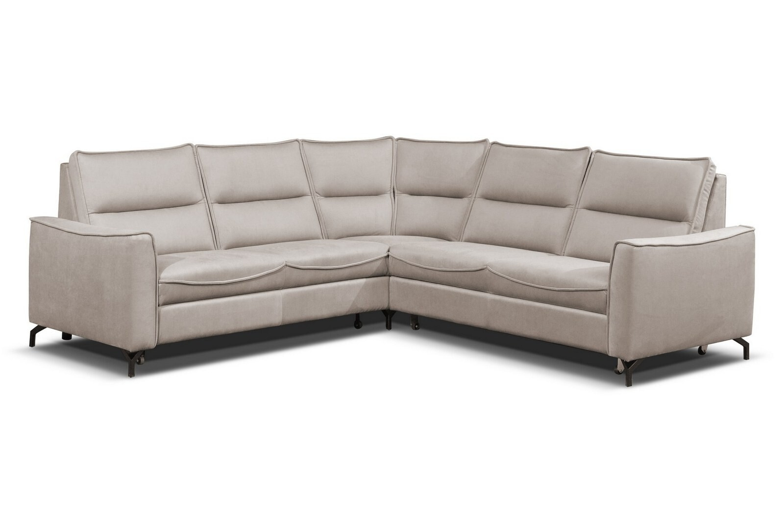 Rozkládací rohová sedací souprava TERST s úložným prostorem pro uložení lůžkovin a dek. Sedák rohovky je vyplněn vysoce odolnou HR pěnou na pružinových vlnovcích. Volitelně může být vybavena úložným modulem s vestavěnými zásuvkami 230 V a USB portem. Sedací souprava stojí na černých, kovových, 10 cm vysokých nožkách a dodává se v pravém i levém provedení. Záda sedačky jsou očalouněná, je vhodná pro umístění v prostoru. K rohové sedací soupravě můžete dokoupit polohovací křeslo nebo elektricky polohovatelné křeslo.