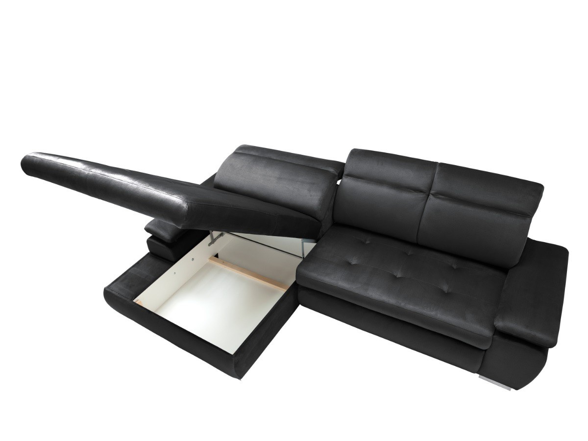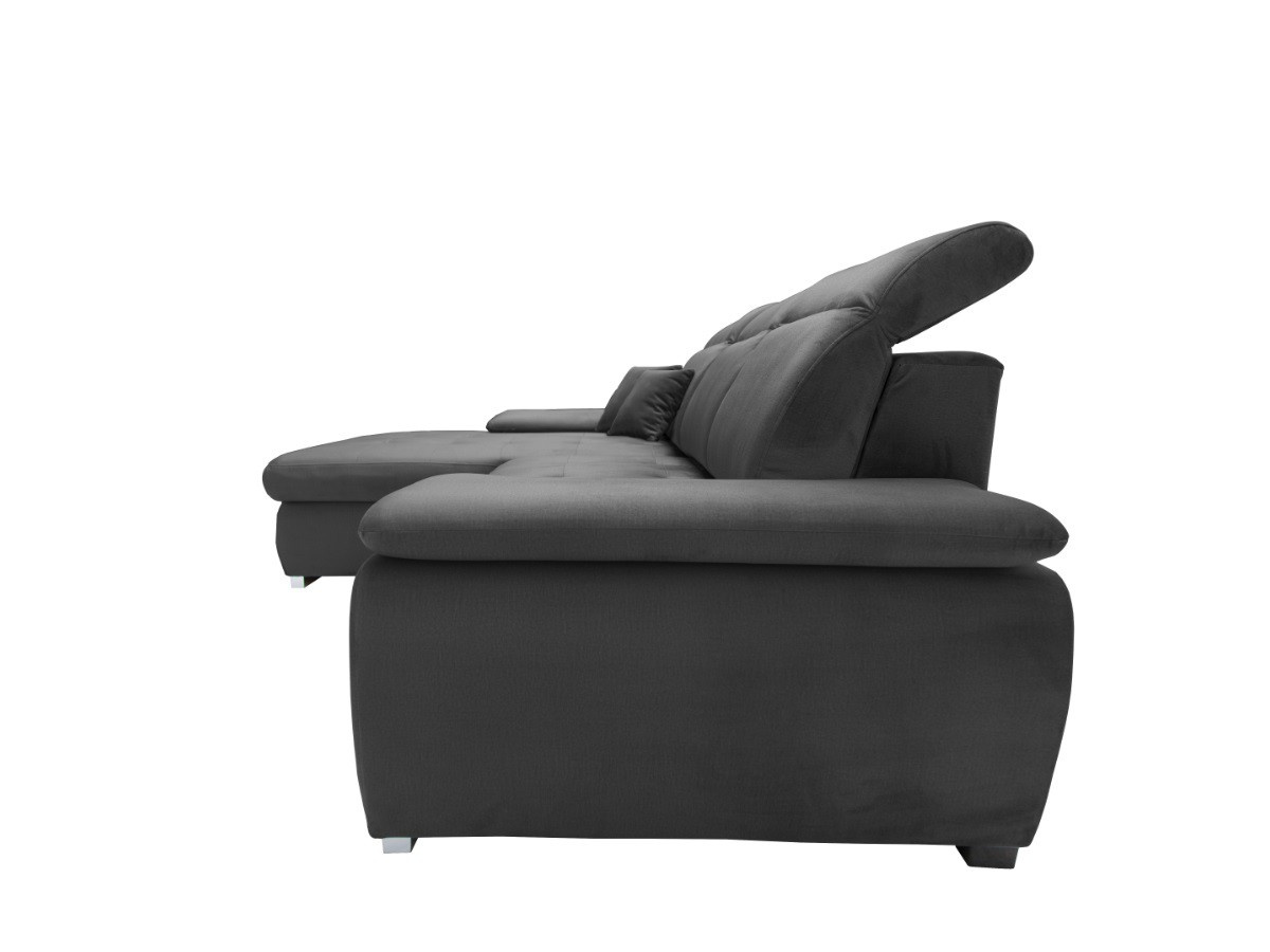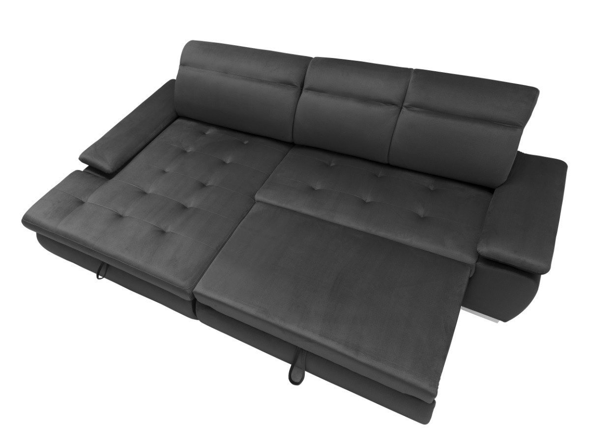 Plně funkční sedací souprava, která vám toho spoustu nabízí. To je sedací souprava TONY. Rohová sedací souprava TONY je vyrobená v levém i pravém provedení. Barevné provedení sedací soupravy TONY je v grafitovém tónu. Potahová látka Kronos 34. Vyplněna je vlnitou pružinou jak v sedáku tak i v rozkladu. V opěráku jsou k dispozici čalounické pásy. Velikost spací plochy je o rozměrech 233 x 132 cm. Součástí jsou také 3 polohovací podhlavníky, které zvýší komfort sezení. Hloubka sedu je 60 cm.