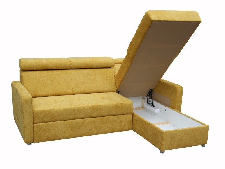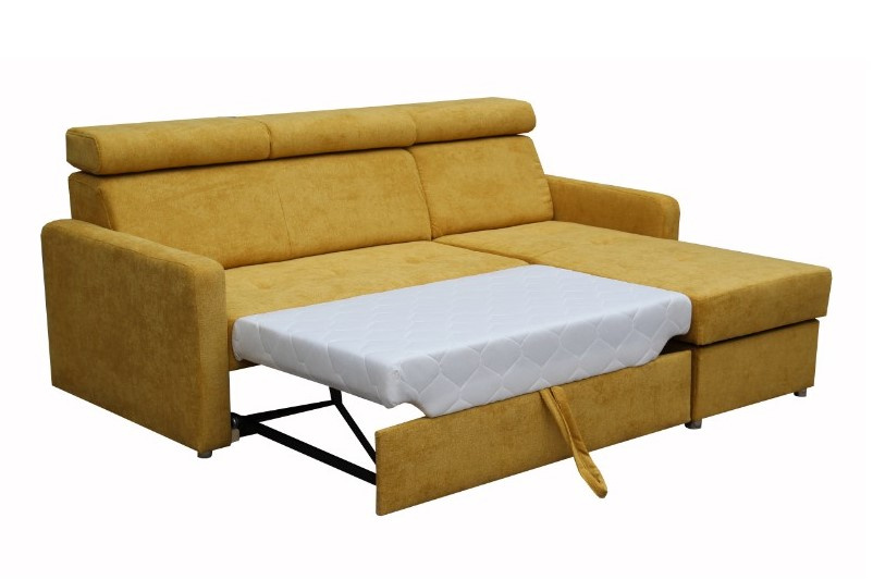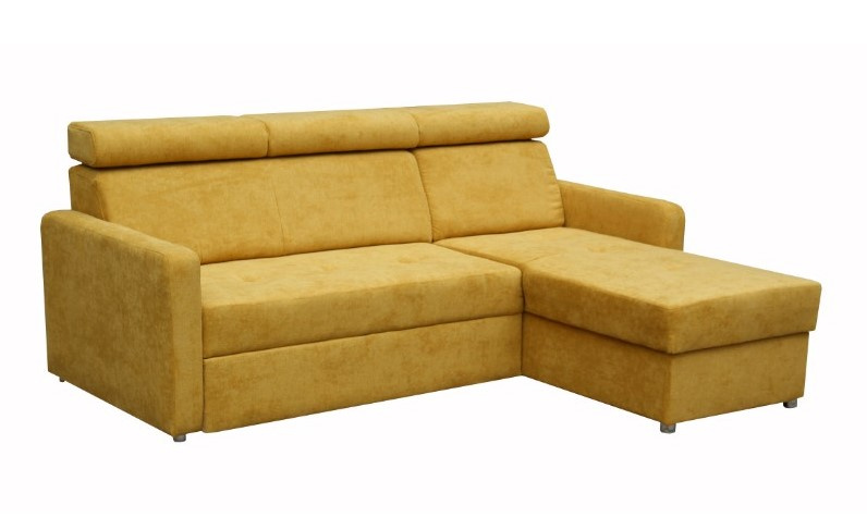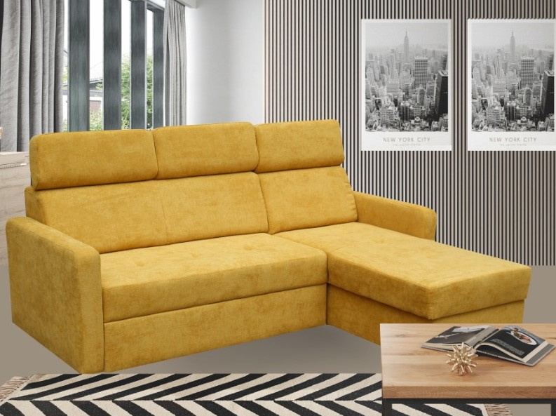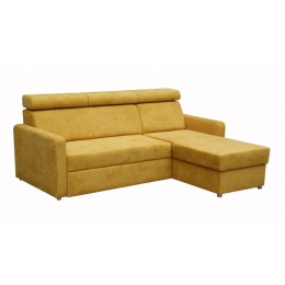 Jednoduchá, elegantní a praktická rozkládací rohová sedací souprava URSULA. Rohové provedení sedačky je univerzální, takže je možné ji sestavit na levou i pravou stranu. Sedací souprava URSULA je očalouněná látkou v hořčicová barvě - Alfa 120. Úložný prostor je pod otomanem rohové části. Komfort sezení zajistí výška sedu 43 cm, hloubka sedu 58 cm a stavitelné opěrky hlavy. Výplň sedáků tvoří vlnité pružiny a PUR pěna. Po rozkladu vznikne lůžko pro příležitostné přespání o spací ploše o 125 x 190 cm. Rozkládací rohová sedací souprava s úložným prostorem se hodí díky svým rozměrům i do menších obývacích pokojů.