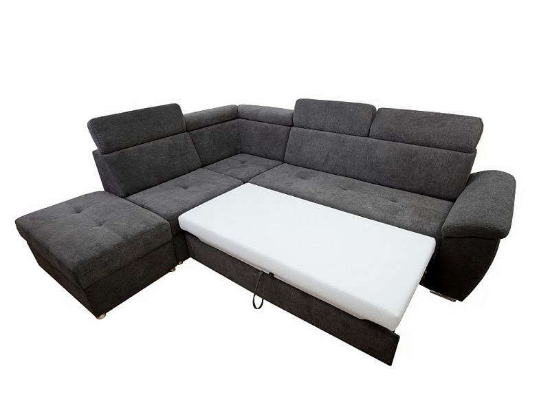 Pohodlná a moderní rohová sedací souprava URSULA MAX. Sedačka je rozkládací s úložným prostorem. Výplň opěrných polštářů je PUR pěna, sedák je vyplněn vlnitou pružinou a PUR pěnou. Po rozložení vznikne spací plocha o rozměrech 125 x 202, je vhodná na příležitostné spaní. V barevném provedení Alfa 20 - šedohnědá, viz foto. Sedačka je v pravém nebo levém rohovém provedení. Opěrky hlavy jsou stavitelné. Taburet můžete použít i samostatně v prostoru.