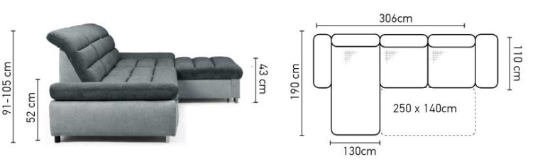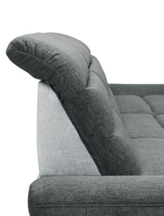 Moderní rohová sedací souprava. Sedačka je rozkládací s lůžkem pro příležitostné přespání, úložným prostorem pro lůžkoviny nebo deky. U rohovky je kladen důraz na pohodlí sezení nastavitelnými opěráky s úpravou hloubky sedu, polohovatelnými područkami a nastavitelnými opěrkami hlavy. Velký výběr potahových látek s nešpinivou povrchovou úpravou.