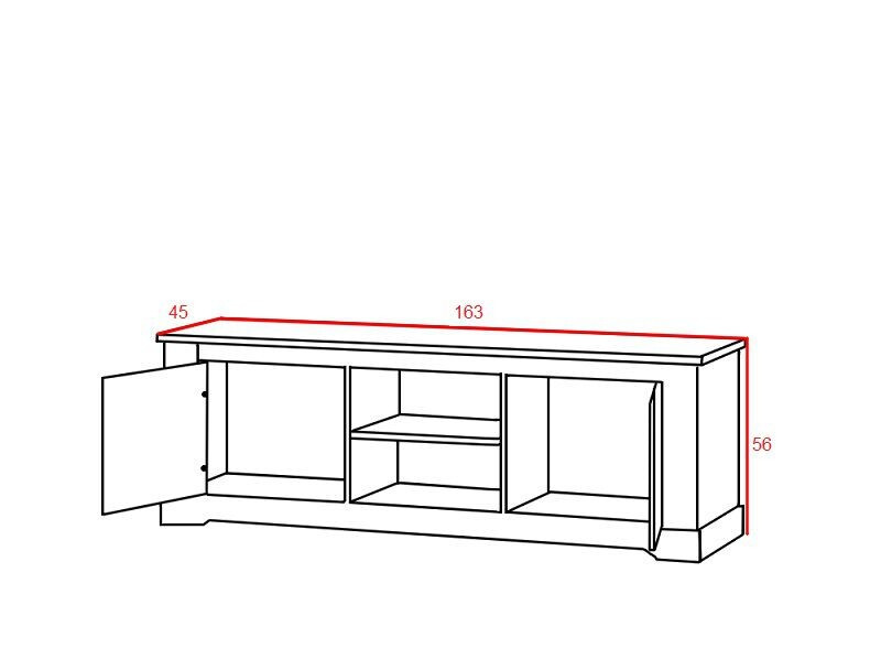 Televizní stolek ze systému ROVA - po stranách plná dvířka, uprostřed otevřená odkládací nika s poličkou