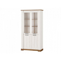 Vitrína ze systému ROVA - policová, spodní dvoudvířka plná, horní dvouprosklená. Prosklenou část můžete za příplatek doplnit LED osvětlením