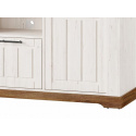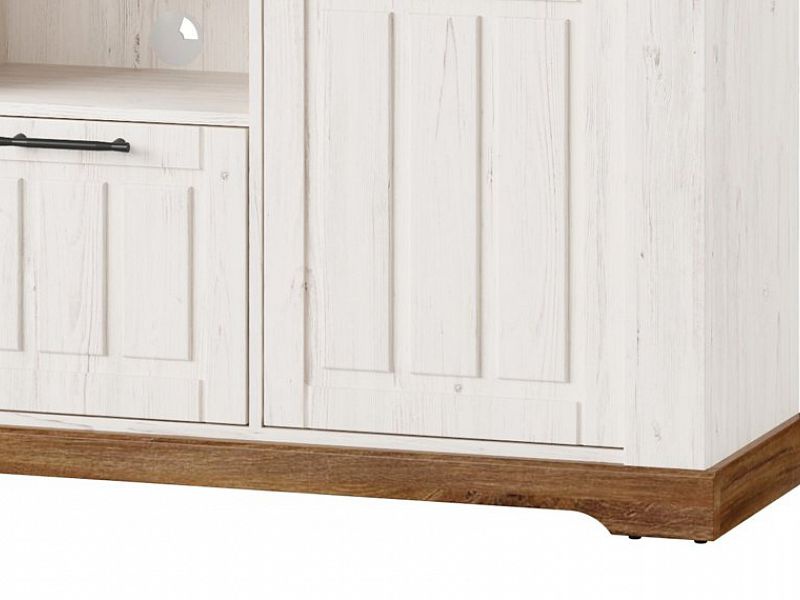 ROVEN je nadčasový a designově velmi povedený systémový nábytek. Bude slušet obývacímu pokoji i jídelně. Je vyroben z foliované dřevotřísky v barevném provedení bílá borovice andersen / dub stirling. U prosklených částí je použito tvrzené bezpečnostní sklo.
