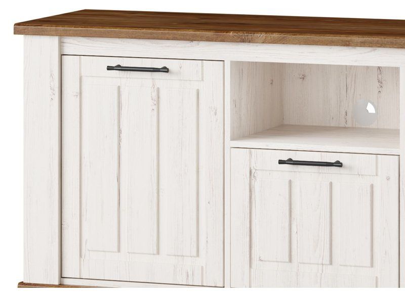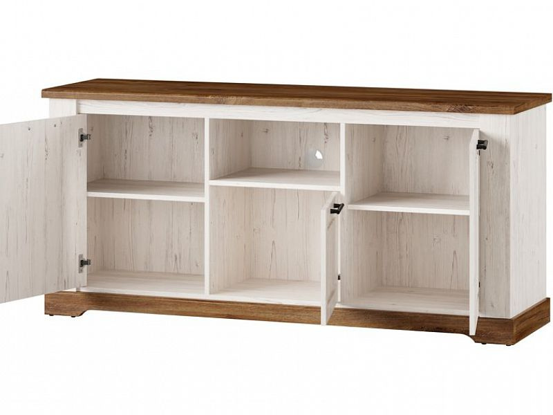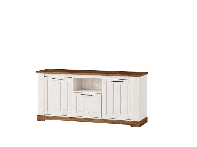 ROVEN televizní stolek 26 - po stranách plná dvířka s poličkou na kažé straně, uprostřed plná dvířka a otevřená odkládací nika