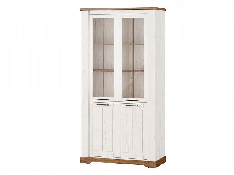 ROVEN vitrína 12 - čtyři police, spodní dvířka plná, horní dvířka prosklená, možno dokoupit LED osvětlení.