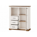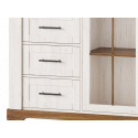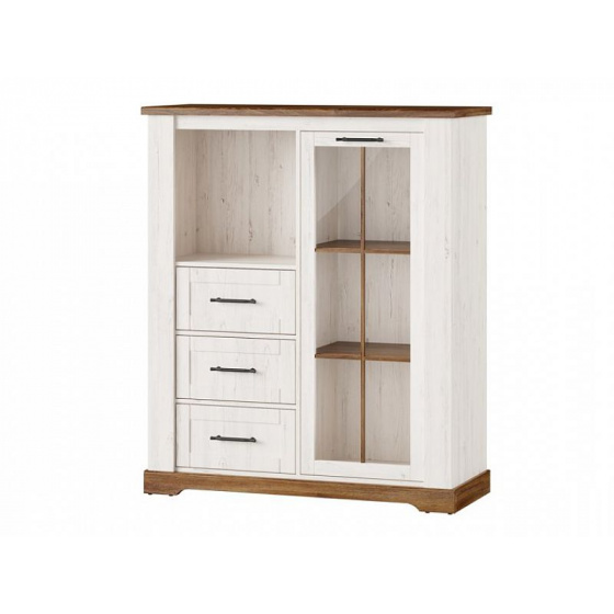 ROVEN vitrína 15 - prosklená dvířka, otevřená odkládací nika a tři šuplíky, možno dokoupit LED osvětlení