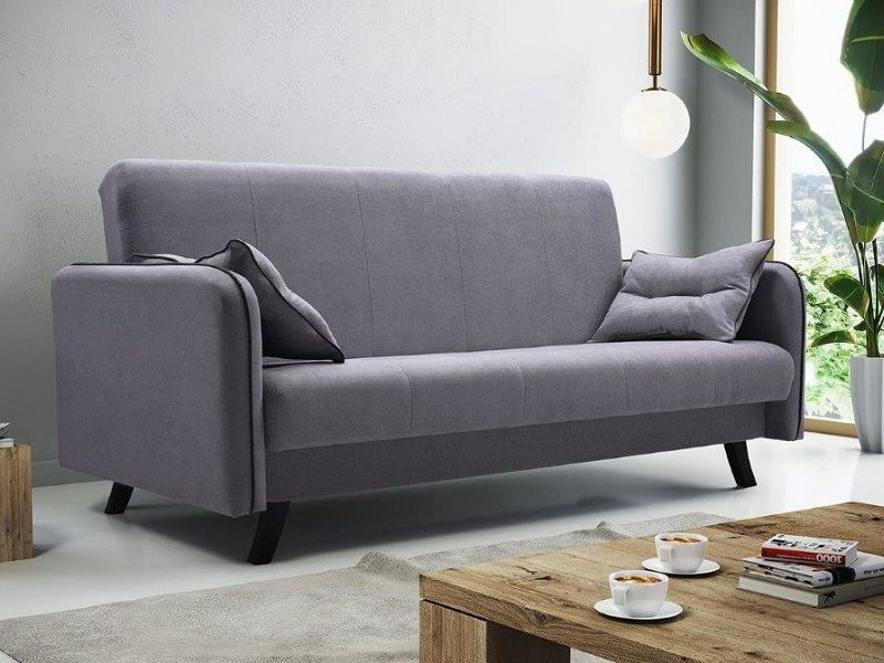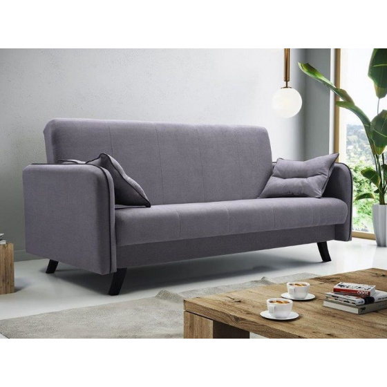 Pohovka ALMERA se stane nepostradatelným kusem nábytku v domácnosti. Pohovka ALMERA je čalouněna látkou ve světle šedé barvě MILL 7380/paspulka tmavá, nohy ořech . Tuto pohovku snadno rozložíte pomocí systému KLIK-KLAK pro příležitostné spaní. Velikost spací plochy je o rozměrech 184 x 136 cm. Součástí je také úložný prostor pro uschování lůžkovin. Výplň sedáku tvoří Bonell pružiny a kvalitní PUR pěna.
