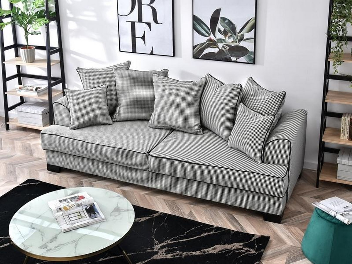 Víceúčelová rozkládací pohovka BIBI s automatickým rozkladem a úložným prostorem, vhodná na příležitostné spaní. Základem sedáku jsou vinuté pružiny a kvalitní PUR pěna, která zajistí pohodlné sezení. Polštáře jsou volně ložené. Nožičky jsou dřevěné. Pohovka BIBI je vybavená velkým úložným prostorem, do kterého lze uschovat ložní prádlo nebo deku s polštářky. Pohovka má očalouněná záda ve stejném potahu jako korpus, je jí možné ustavit do prostoru.