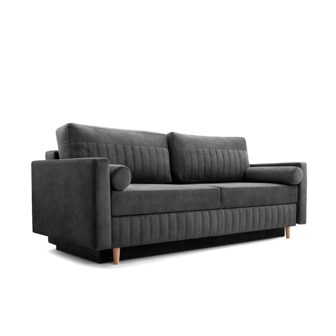 Atraktivní rozkládací pohovka BONGO poslouží nejenom jako pohodlné posezení, ale i jako lůžko k dennímu spaní. Potah je ve tmavě šedém barevném provedení v potahové látce CLOUD 97 PIK s úpravou easy clean, která nevsakuje tekutiny a snadno se udržuje.