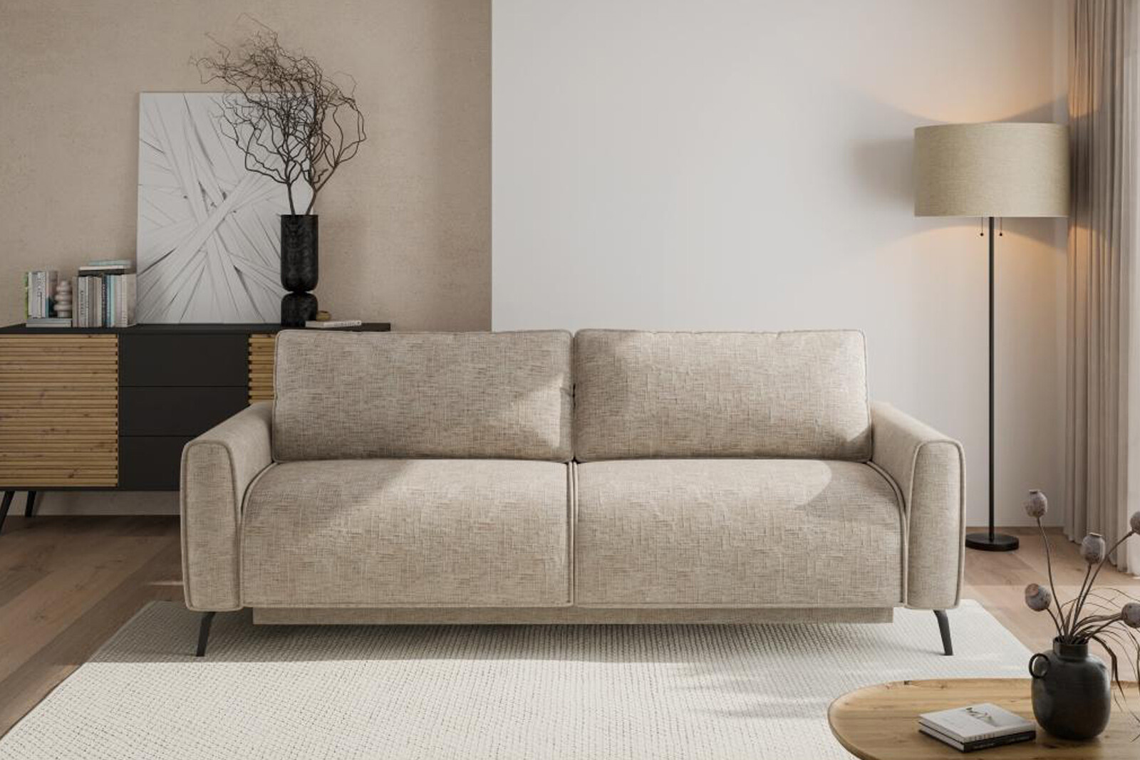 Moderní rozkládací pohovka BRAZIL s úložným prostorem pro uložení dek a lůžkovin. Je vybavena pružinovým jádrem Bonnell s vysoce elastickou pěnou a zaručuje pohodlí i při denním spaní. Moderní mechanismus umožňuje rozložit pohovku do polohy pro spaní mírným nadzvednutím sedáku a jeho posunutím dopředu. Pohovka najde své uplatnění ve studentských pokojích i malých bytech, kde zastane funkci sedací soupravy i pohodlného lůžka.