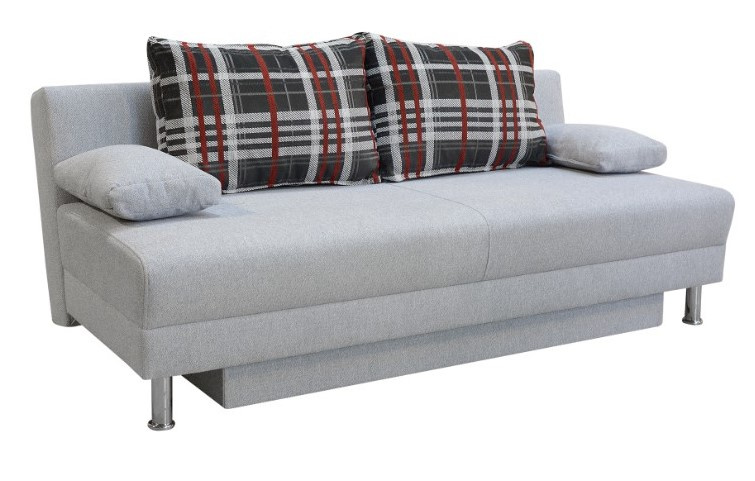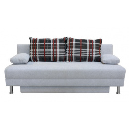 Klasické interiéry založené na geometrických tvarech, můžete doplnit například rozkládací pohovkou FADORA. Jednoduché zpracování v šedém barevném provedení je doplněno o krásné barvy dvou opěrných polštářů. Pohovka FADORA je vhodná ke každodennímu spaní. Velikost spací plochy po rozložení je o rozměrech 195 x 145 cm. Matrace je vyrobena z vysoce-elastické PUR pěny a vlnité pružiny. Pro rozložení není nutné pohovku odtáhnout od zdi. Záda pohovky jsou šikmé, pro větší komfort sezení. Boční polštářky - opěrky, mají snímatelné potahy, díky čemuž je možné snadno je vyprat. Úložný prostor se nachází pod sedací částí pohovky. Vhodné pro uschování lůžkovin nebo drobností, které nepotřebujete mít neustále na očích. Snadný přístup je zajištěn díky vysunutí k sobě. Nožky jsou kovové, stříbrné barvy.