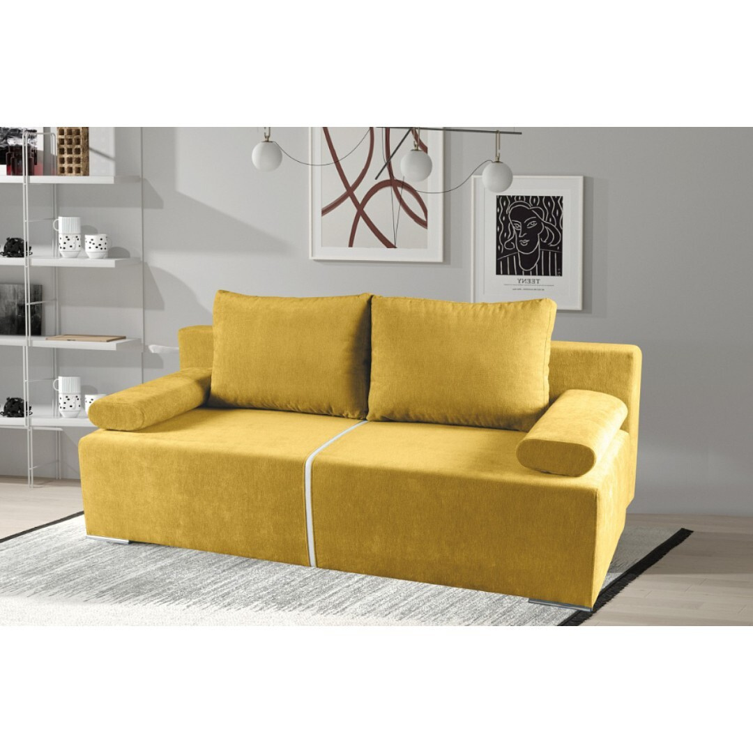 Rozkládací pohovka LEA v hořčicovém odstínu, která snadno doplní interiér. Pohovka LEA v látce Wind 48 / Wind 02. Jde o látku typu Shenil, která odolává žmolkování a má dlouhou životnost. Součástí pohovky je také funkce rozkladu a úložný prostor. Velikost spací plochy je o rozměrech 138 x 208 cm, což umožňuje pohodlné přespání až dvou osob. Je vhodná ke každodennímu přespání, tuto vlastnost oceníte, pokud nemáte doma místa nazbyt, nebo pohovkou vybavíte studentský pokoj. Pro zajištění maximálního komfortu je pohovka LEA vybavena bonellovými pružinami v sedáku, které poskytují optimální a pohodlí.
