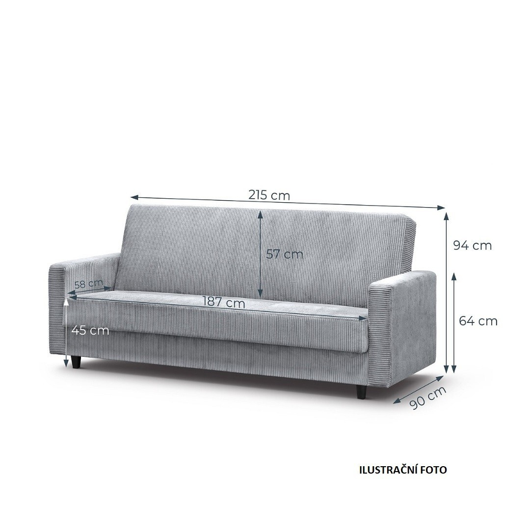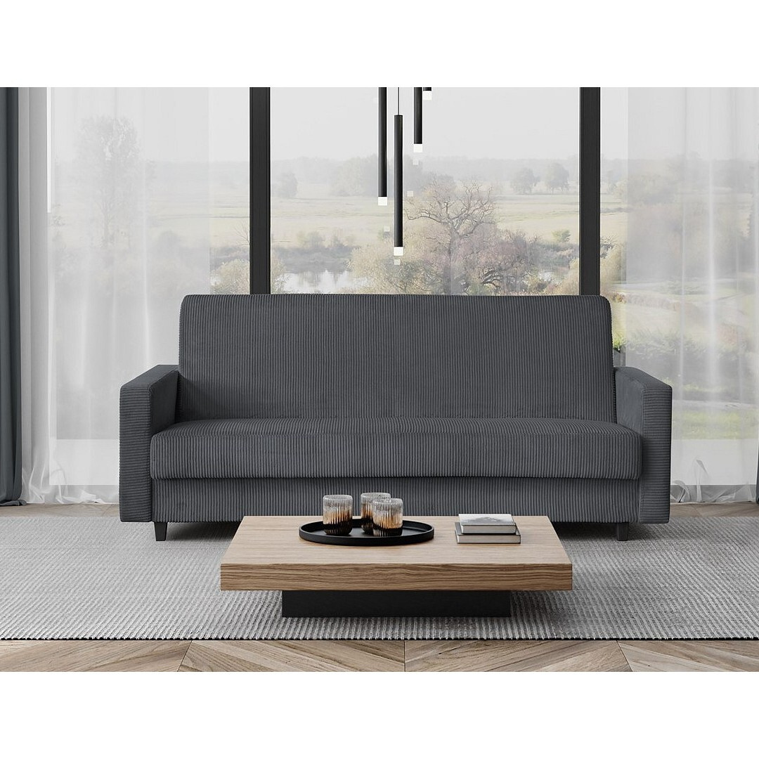 Praktická a pohodlná rozkládací pohovka s úložným prostorem LORA. Stylová pohovka, která doladí váš interiér do posledního detailu. Barevné provedení pohovky LORA je v antracitovém odstínu látky Poso 34. Tato látka je podobná manšestru, je velmi hrubá, s úpravou PET FRIENDLY - pro snadné čištění od zvířecí srsti, vlasů. Rozklad pomoci klik-klak systému. Velikost spací plochy je o rozměrech 122 x 190 cm. Je určený pro příležitostné přespání dvou osob. Nechybí ani úložný prostor vhodný k uschování lůžkovin a denních dek. Výplň je tvořená bonell pružinami.