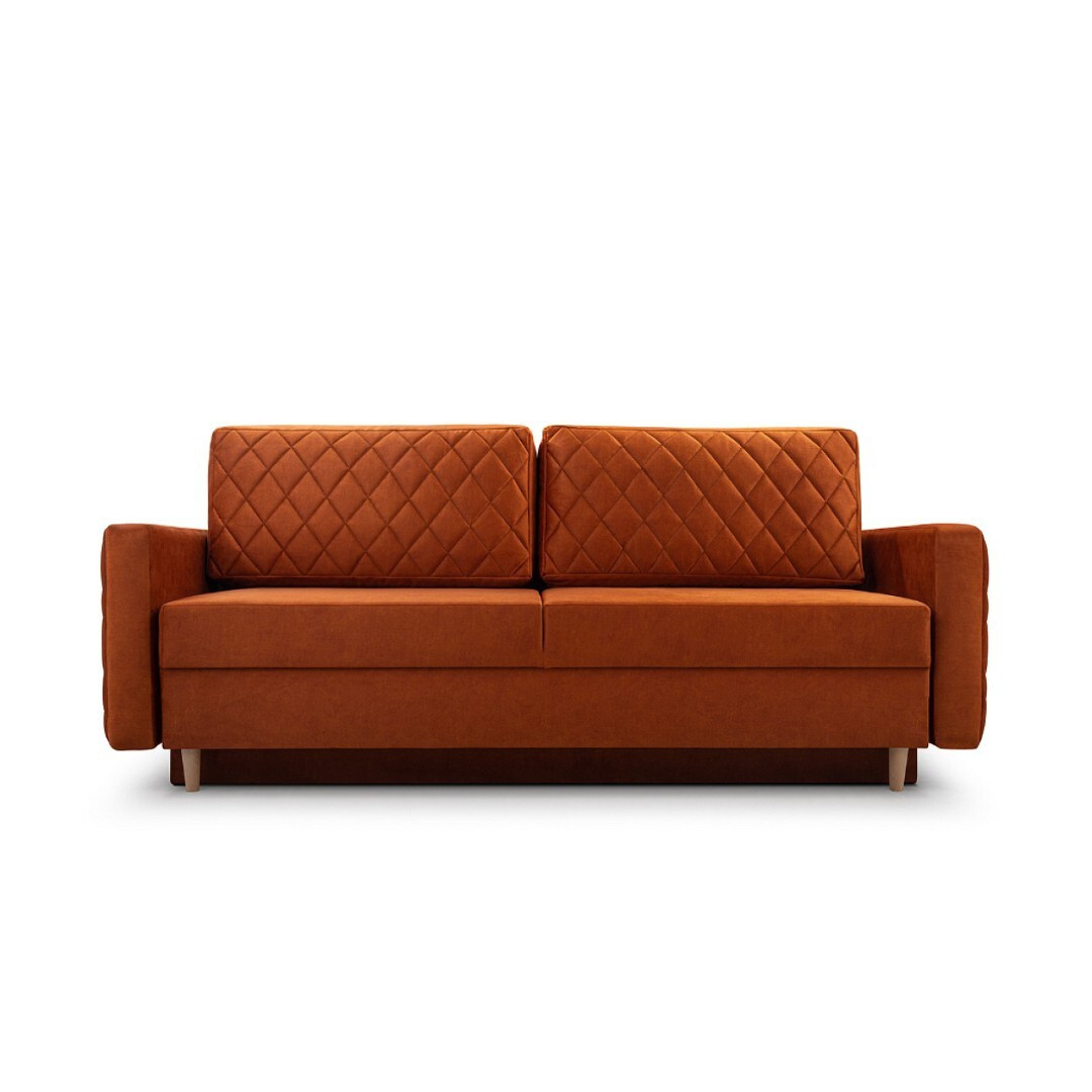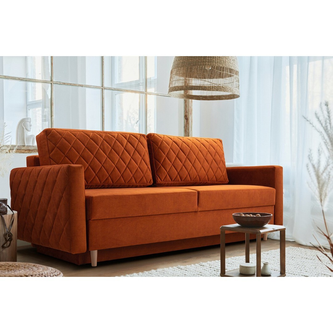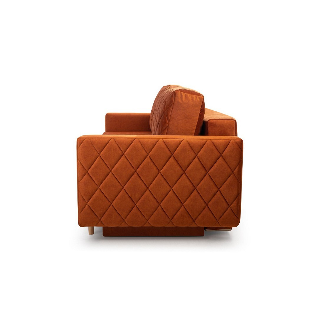 Barevné provedení v teraccotové barvě látky Noel 12, potahovka je jemná a příjemná na dotek. Dekorační prošití polštářů a vnějších stran područek je atraktivní detail, který vás zaujme.