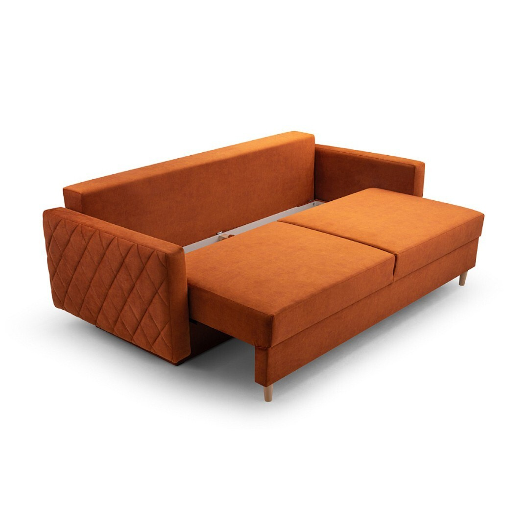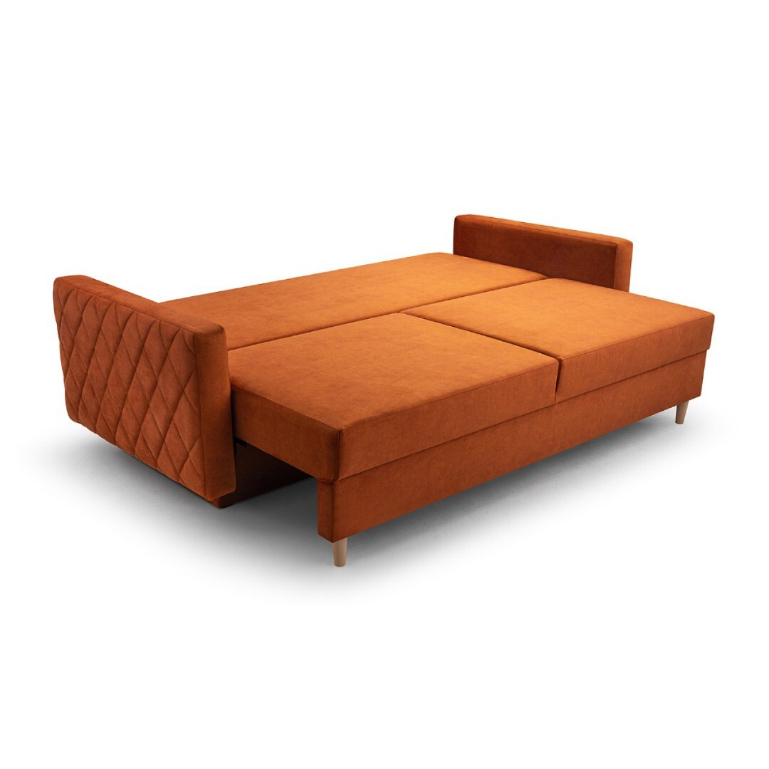 Nožičky jsou vyrobeny z bukového dřeva, které dodávají pohovce LUMÍR pevnost a eleganci. Jejich výška je 10 cm a jsou tedy dostatečně stabilní. Výplň je zajištěna vysoce elastickou PUR pěnou a bonellovou pružinou. Poskytuje tak optimální pohodlí pro každodenní spaní. Opěrné polštáře jsou vyplněny silikonem. Područky a polštáře zvyšují komfort pohovky.