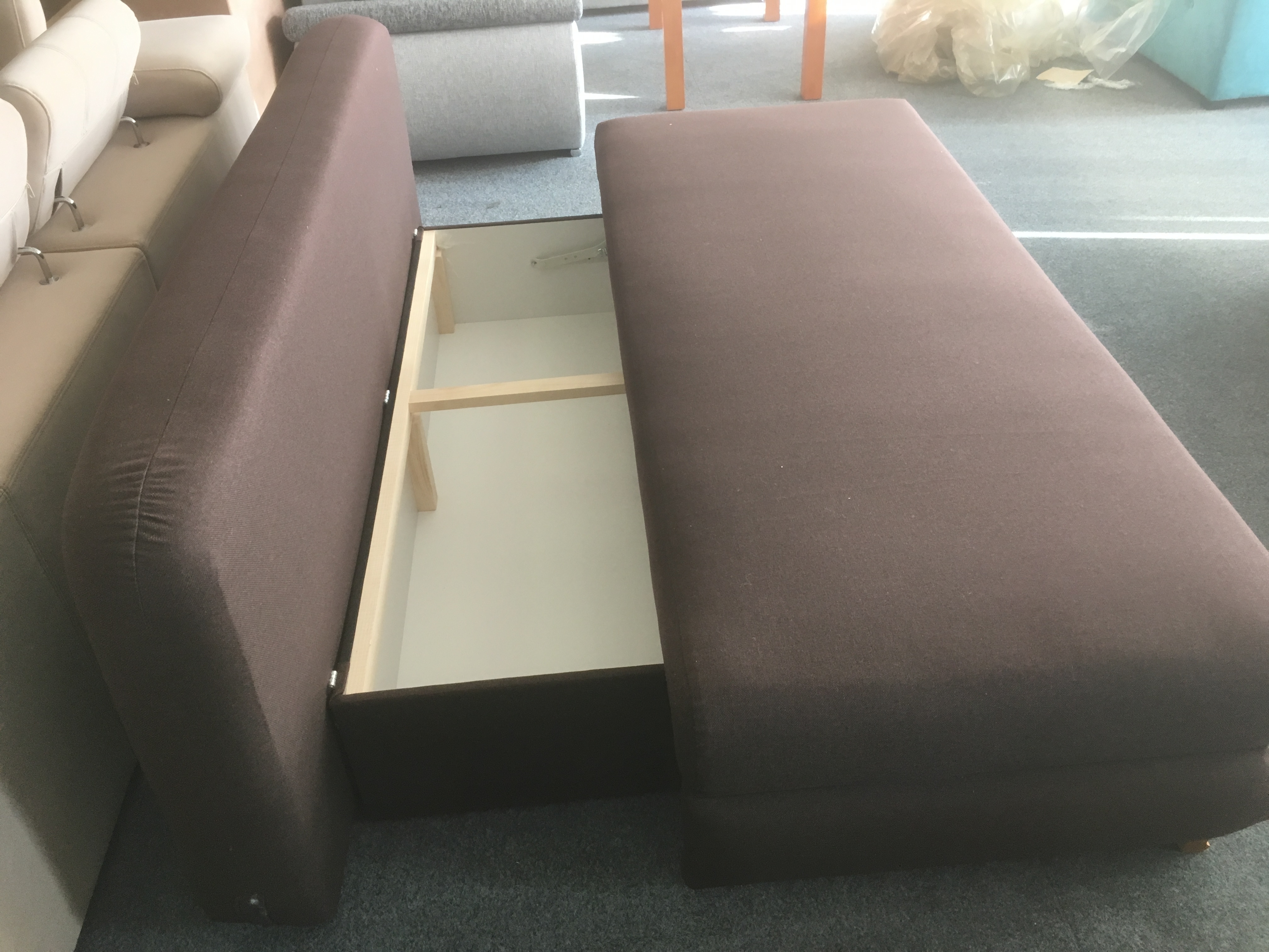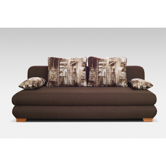 Rozkládací pohovka ONDRA s úložným prostorem. Moderní rozkládací pohovka s velkým úložným prostorem a pružinovou výplní. Rozklad pomocí automatu. Pohovka se rozkládá povytažením přední části a sklopením zadní části do vodorovné polohy. Pohovka je vhodná ke každodennímu spaní.