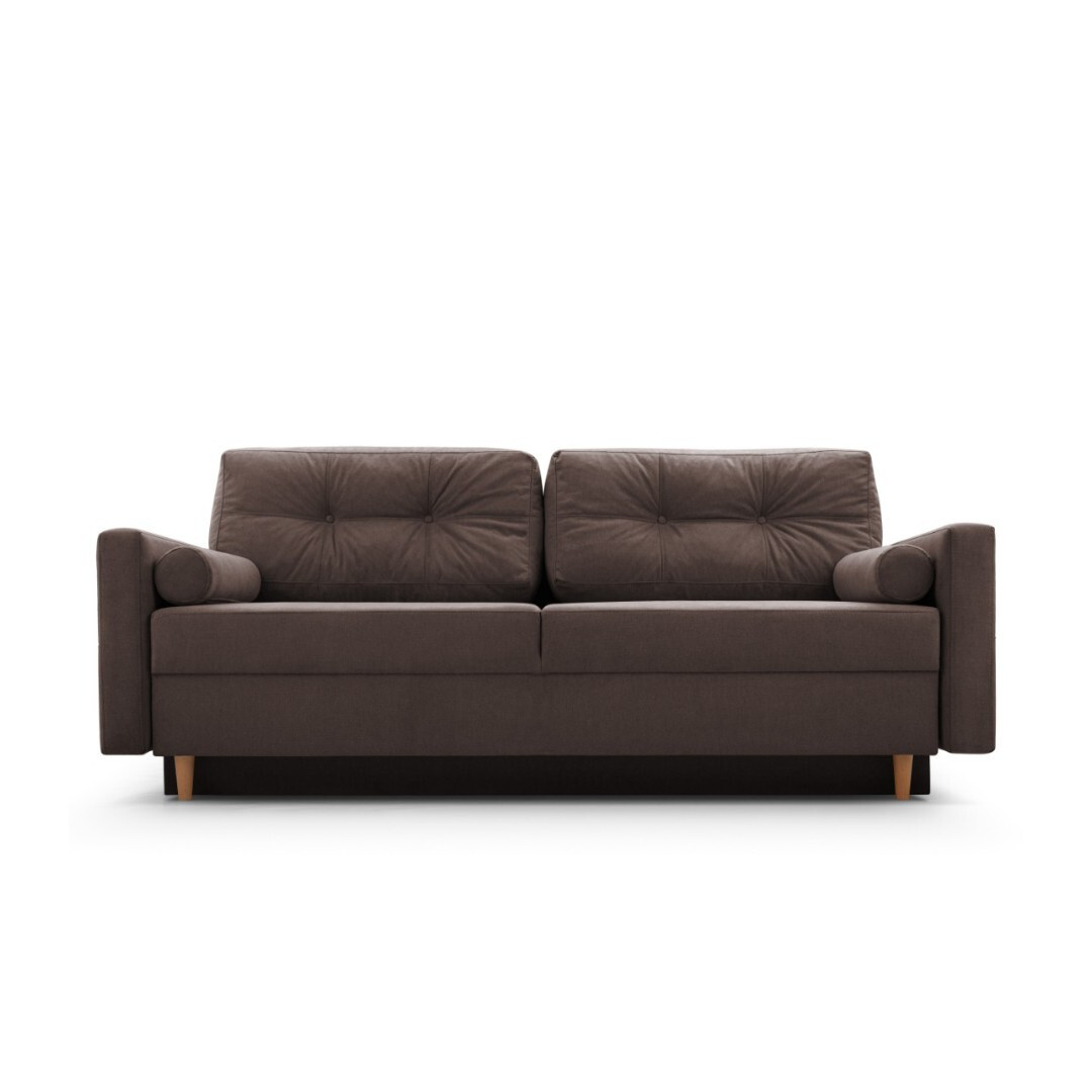 Jednoduchý tvar a moderní design, jsou hlavními rysy rozkládací pohovky PALEO. Výborně splní svou funkci nejenom v obývacím pokoji, ale také v pokoji pro hosty, nebo v pokoji u vašich dětí. Pohovka PALEO je rozkládací s úložným prostorem. Vyrobena byla v barevném provedení tmavě hnědá, v potahové látce Queens 4. Nožičky jsou vyrobeny z buku, vysoké 13 cm.
