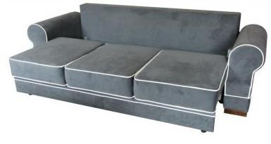 Víceúčelová rozkládací pohovka RETRO s automatickým rozkladem a úložným prostorem, vhodná na příležitostné spaní. Základem sedáku jsou vinuté pružiny a kvalitní PUR pěna, která zajistí pohodlné sezení. Polštáře jsou volně ložené. Nožičky jsou dřevěné. Pohovka RETRO je vybavená velkým úložným prostorem, do kterého lze uschovat ložní prádlo nebo deku s polštářky. Pohovka má očalouněná záda ve stejném potahu jako korpus, je jí možné ustavit do prostoru.