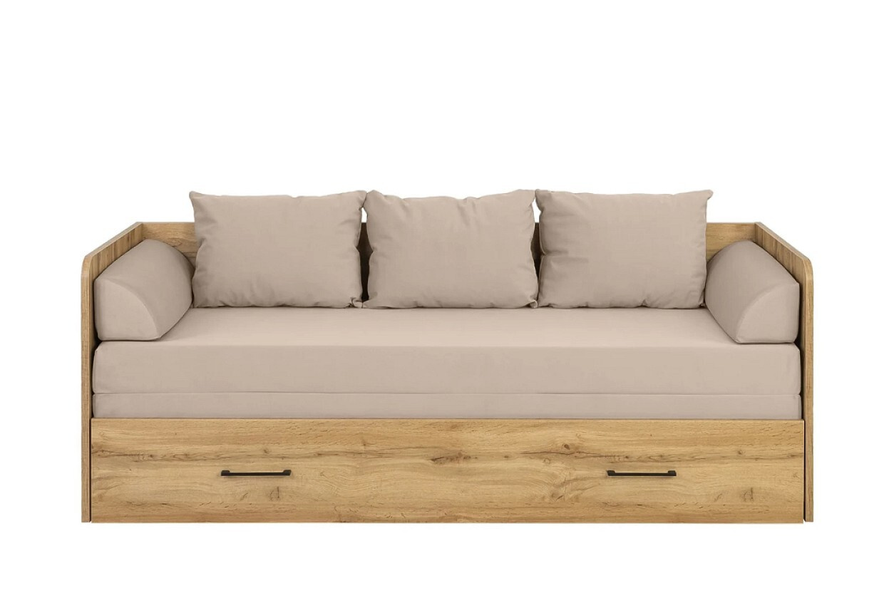 Objevte multifunkční dřevěnou rozkládací pohovku s úložným prostorem, která kombinuje elegantní design a praktické využití. Ideální pro malé prostory, tento kus nábytku nabízí pohodlné spaní a dostatek úložného prostoru pro vaše potřeby. S přiloženými polštáři se snadno promění v pohodlnou pohovku. Vyrobeno z kvalitního lamina s moderním vzhledem, tato pohovka je skvělým doplňkem každé domácnosti. Perfektní pro studenty, malé byty nebo jako stylový doplněk do obývacího pokoje.