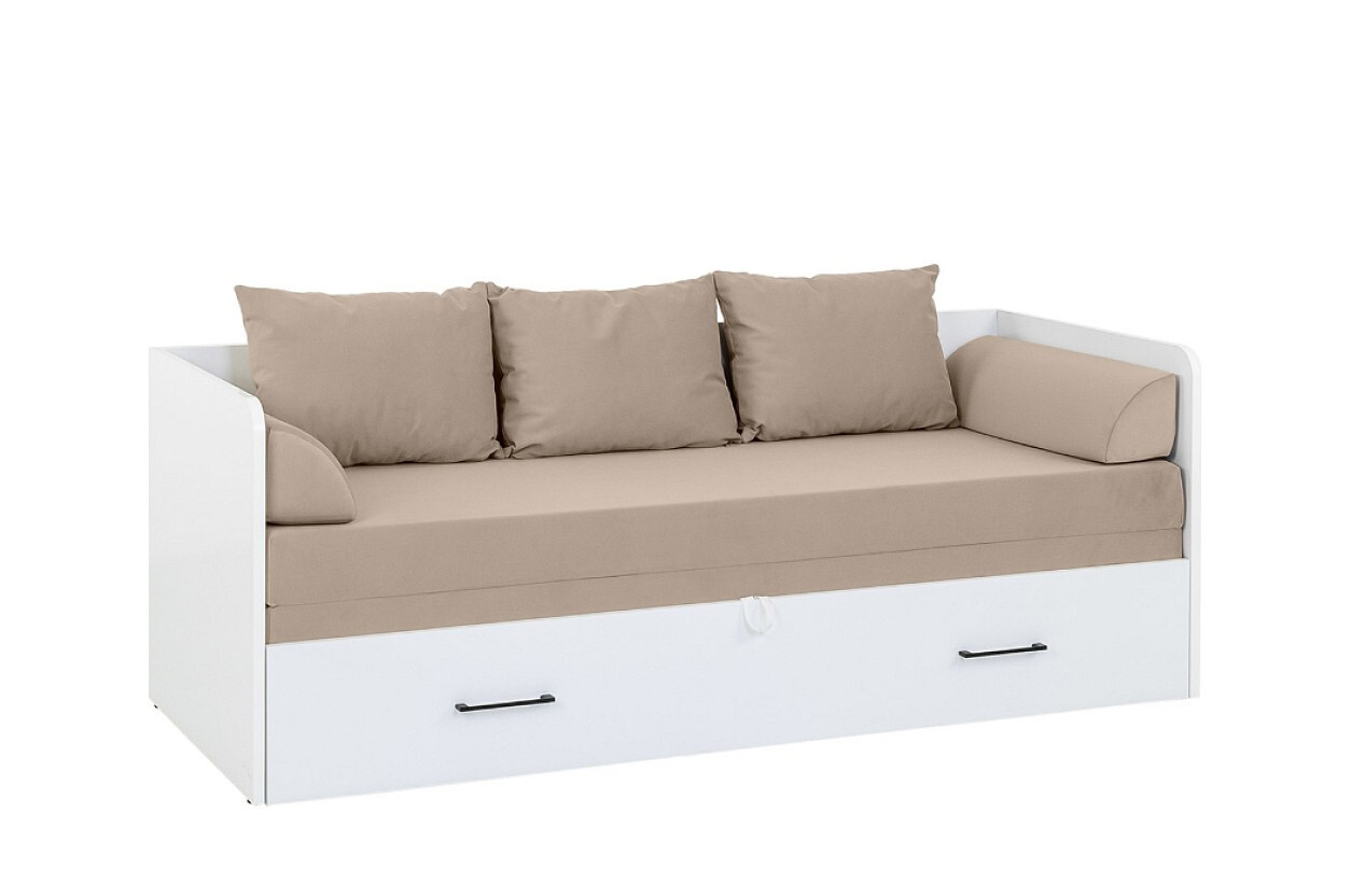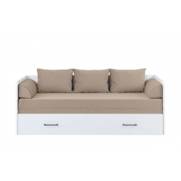 Rozkládací pohovka TETRIX je vyrobena z kvalitního foliovaného lamina v barvě bílé a polštáři v béžové barvě. Čalounění pohovky je z kvalitní potahové látky s technologiemi Easy Clean (odpuzuje rozlité tekutiny) a PET Friendly (zabraňuje zachytávání chlupů od domácích mazlíčků). Přes den Vám pohovka TETRIX umožní pohodlné sezení a v noci ji jednoduše rozložíte na pohodlné lůžko díky rozkládacímu systému na skrytých kolečkách. Pohovku je možno rozložit pouhým jednoduchým potažením za úchytky. V rozloženém stavu je spací plocha o rozměrech 154x195 cm. Součástí rozkládací pohovky Tetrix je úložný prostor, do kterého je přístup zajištěn pomocí vyklápěcí desky. Snadnému zvedání pomáhá pružinový mechanismus na obou stranách postele, díky němuž je zvedání a zpětné sklopení deskového roštu velmi jednoduché. Úložný prostor je o rozměrech cca 187 x 68 x 16 cm. Dno úložného prostoru je ze sololitové desky, která má ve spodní části výztuhy. Zatížení úložného prostoru může být až 20 Kg.